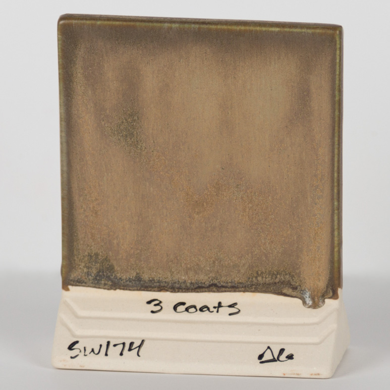 Cone 6 oxidation (larger image): Leather is a matte brown glaze that displays shades of blue and green. The variation of the glaze is dependent on application. The thicker the application, the more homogenous the color will be. The glaze will break translucent where thinner and pool darker around surface textures.