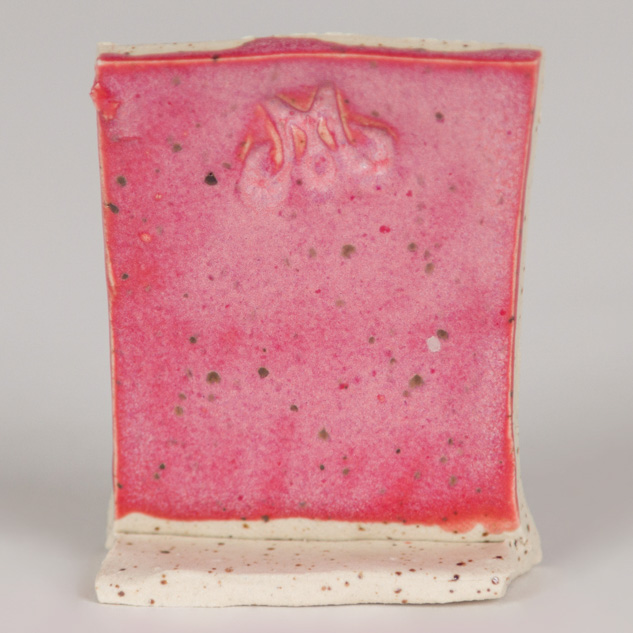 Cone 10 reduction (smaller image): Color darkens to a deep red.