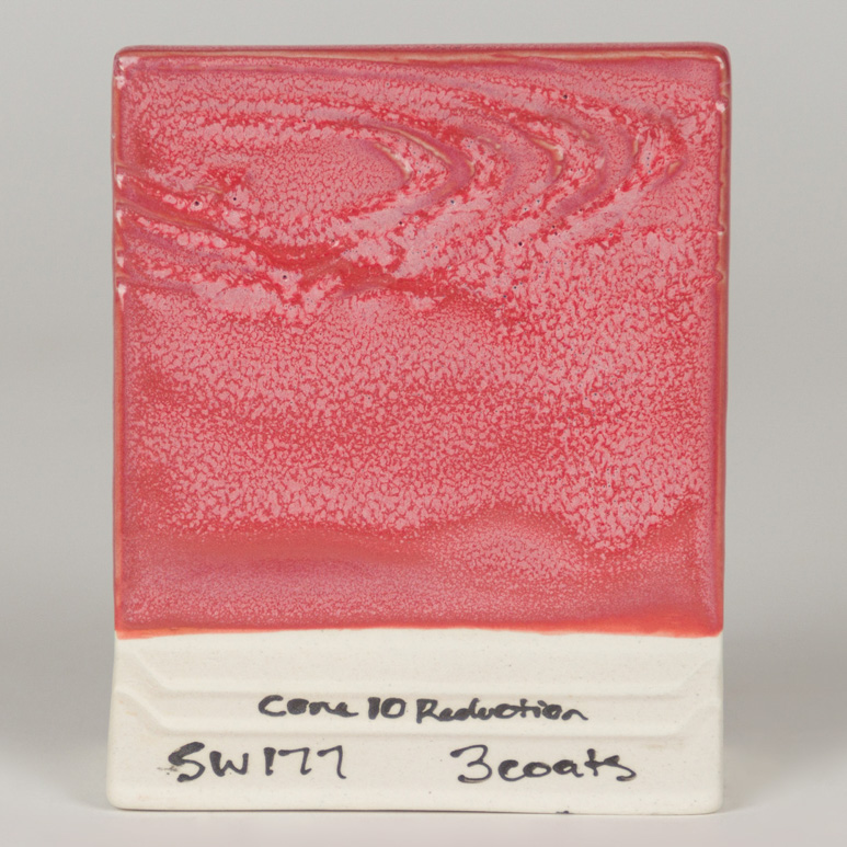 TIP: Over application of Raspberry Mist can cause pinholing. Brighter color and less variation at cone 5.