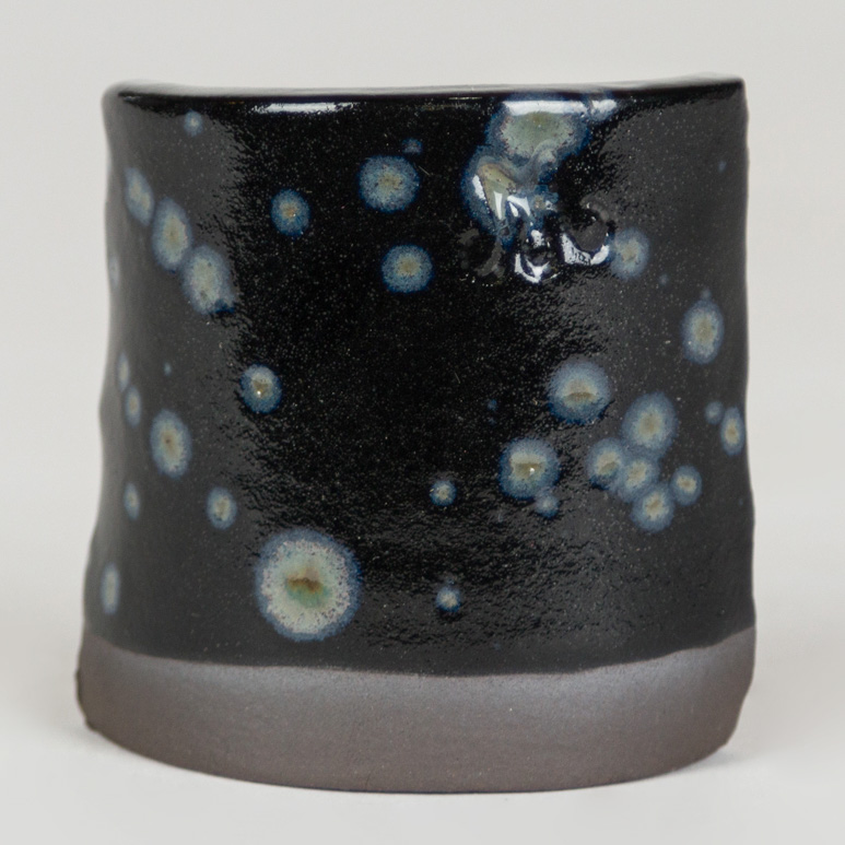 Cone 6: Night Moth is an opaque gloss glaze with crystals that bloom into sage and gray.