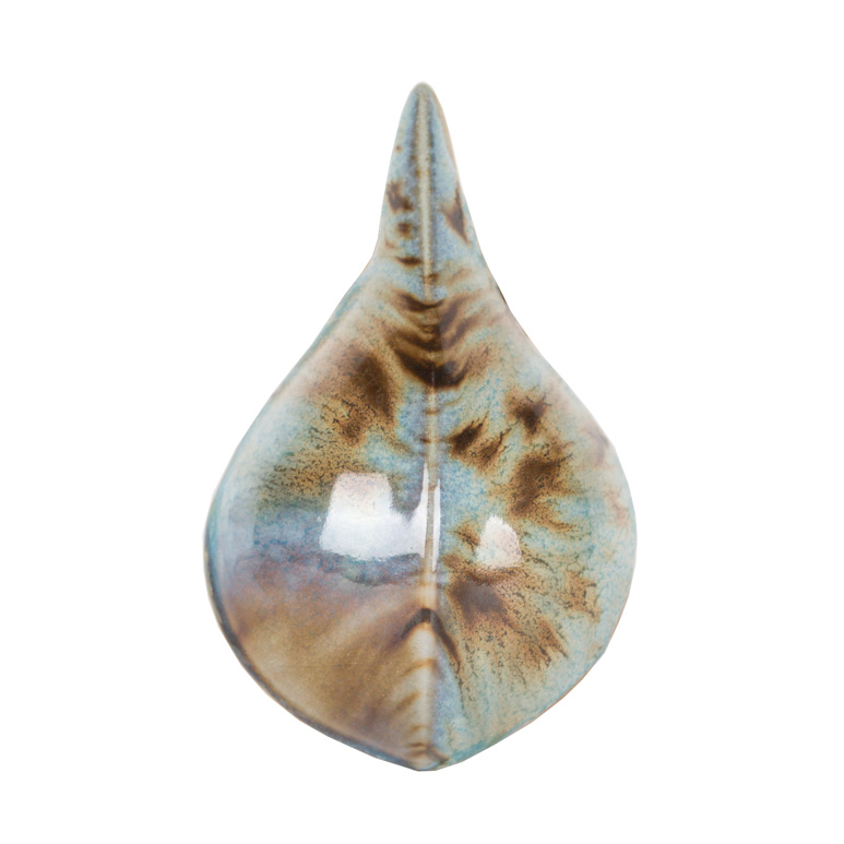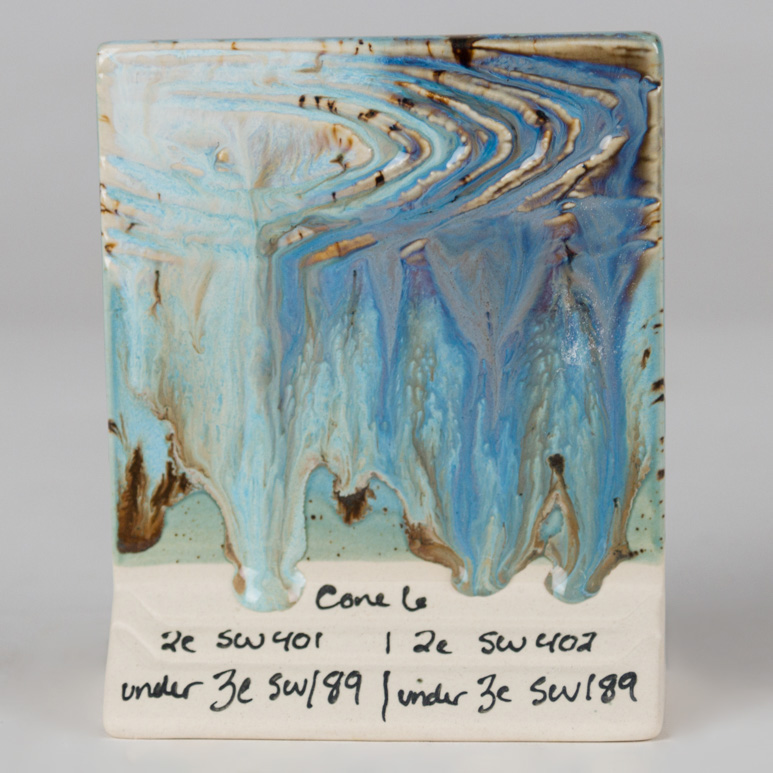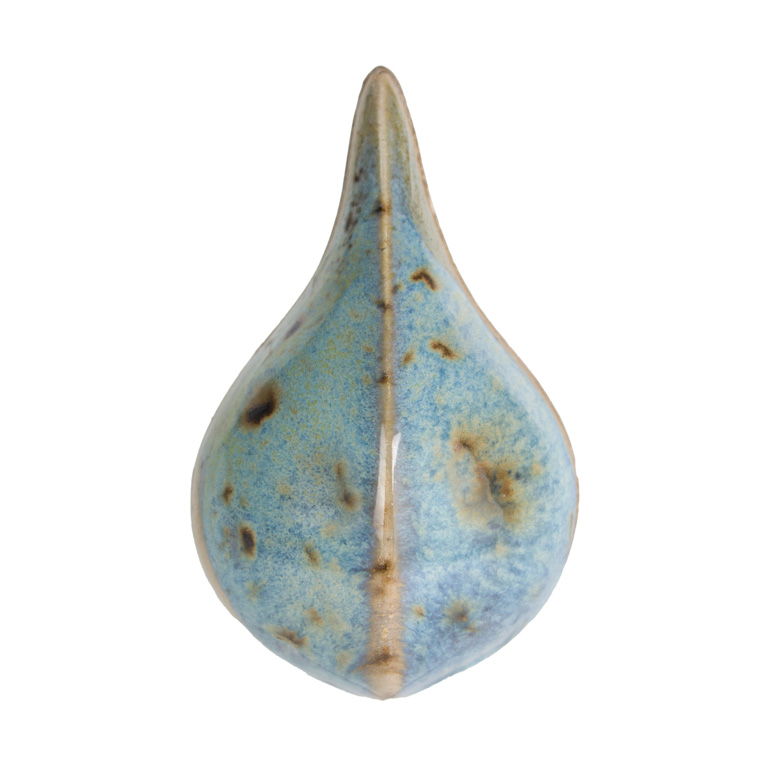 Stoneware Crystal glazes are designed to expand upon the surface with dazzling bursts of color. Fired results will vary based on ware’s orientation. Crystals will settle to the bottom of the jar and will need a good mixing prior to initial use. Re-stir between each coat. Stir with palette knife or other unpainted tool. Avoid placing crystals near the bottom third of a vertical piece as they may cause additional movement during firing. Crystals will flow more than the base glaze. While the glaze is wet, use your fan brush to redistribute the crystals to achieve balanced coverage. Over-application or heavy deposition of the crystals can cause pinholing or running. When storing a crystal glaze, you may consider storing upside down to facilitate crystal dispersion on the next use.