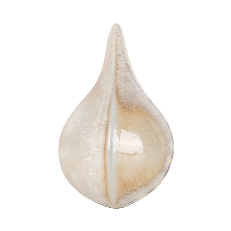 Cone 6 oxidation (large photo): Sand Dollar is a satin, opaque, cream-colored glaze with white and gold mottling. Breaks glossy transparent over texture.