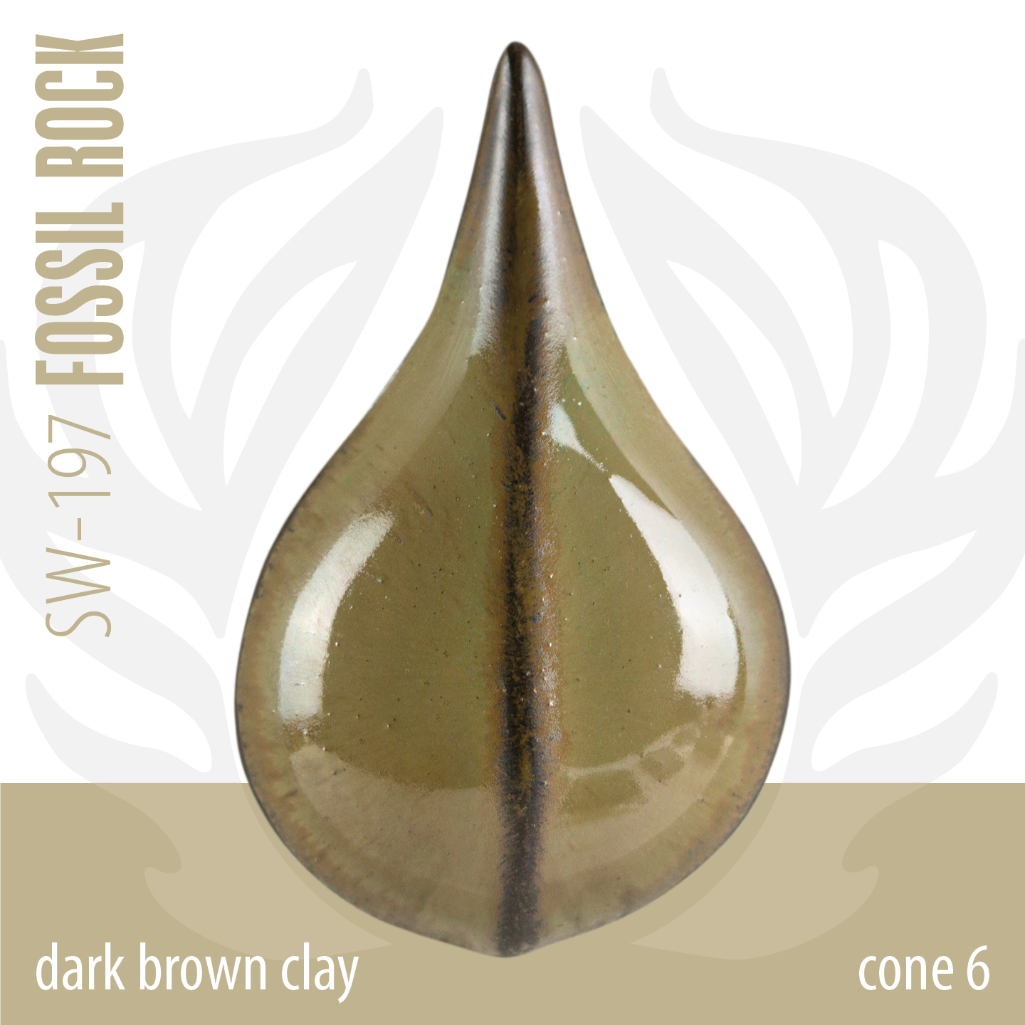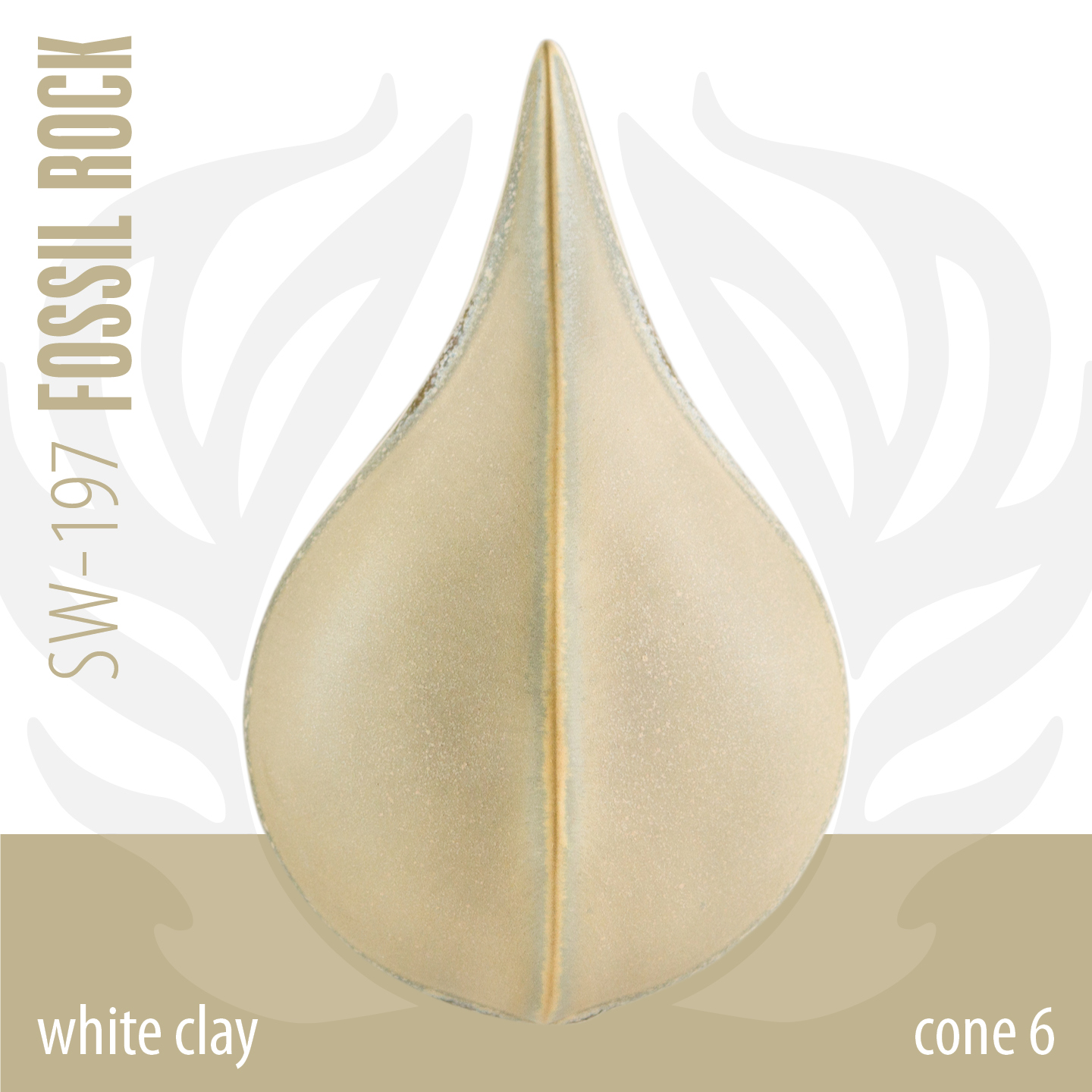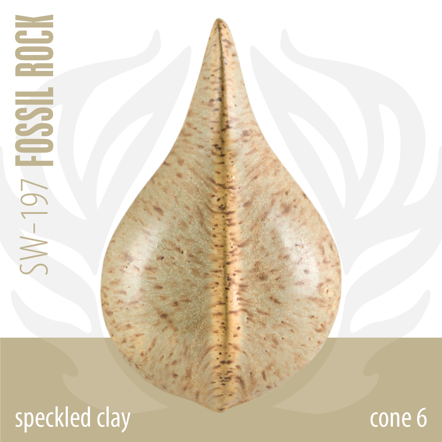 Cone 6 oxidation (large photo): Geologically inspired with mottled earth tones, Fossil Rock is an opaque, tan, matte glaze that breaks over texture.
