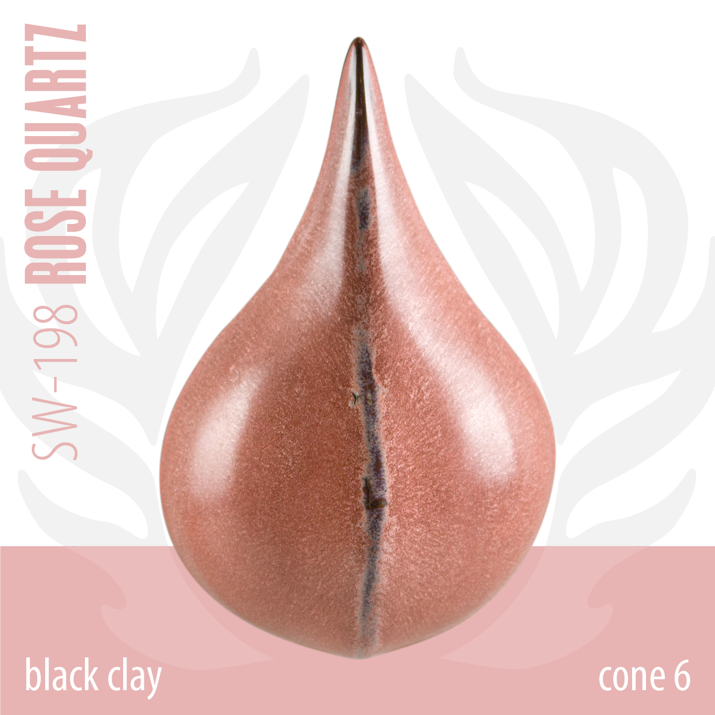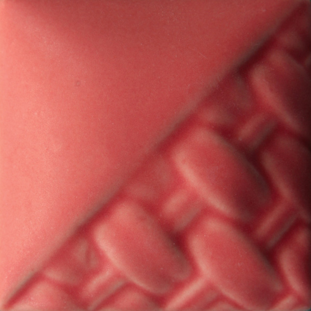 TIP:  This glaze is fluid; Apply receding coats to avoid run off on vertical pieces and practice caution in combination. Over-application of Rose Quartz can cause surface issues. Thin application results in vibrant pink; light pink variegation develops with additional application.  The micro-crystallization effect is enhanced in a rapidly cooling kiln.
