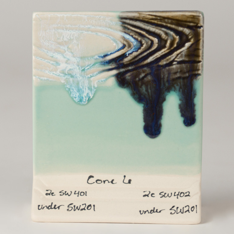 Cone 6: Turquoise provides translucent, bluish-green gloss color. Designed to provide a hint of color with one coat, deeper color with two to three coats – but remaining translucent.