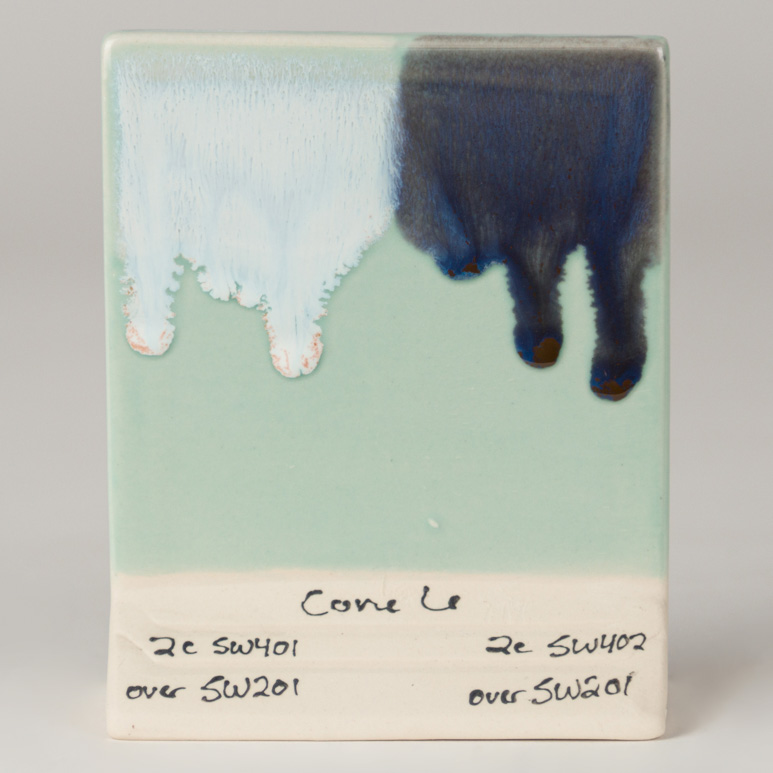 TIP: One coat allows more of the clay body characteristics to appear through the glaze, adding a faint color gloss to the surface. Subsequent coats deepen the turquoise color but at three coats you will still obtain a translucent fired surface. Three+ coats will produce more opacity and less translucency.