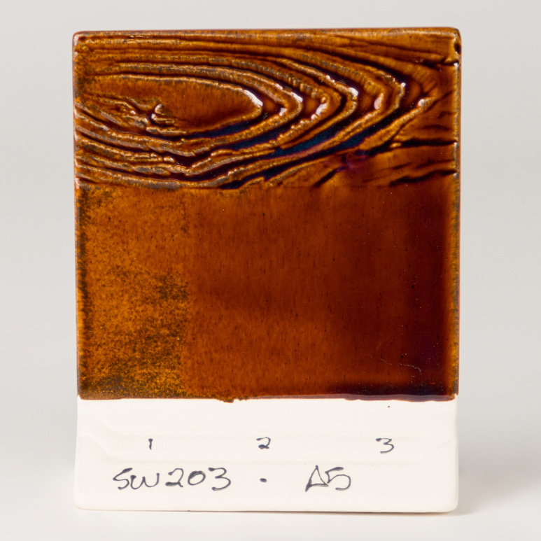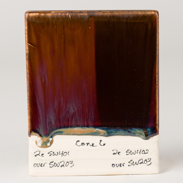 Cone 6: Root Beer provides translucent, rich, brown gloss color. Designed to provide a hint of color with one coat, deeper color with two to three coats – but remaining translucent.
