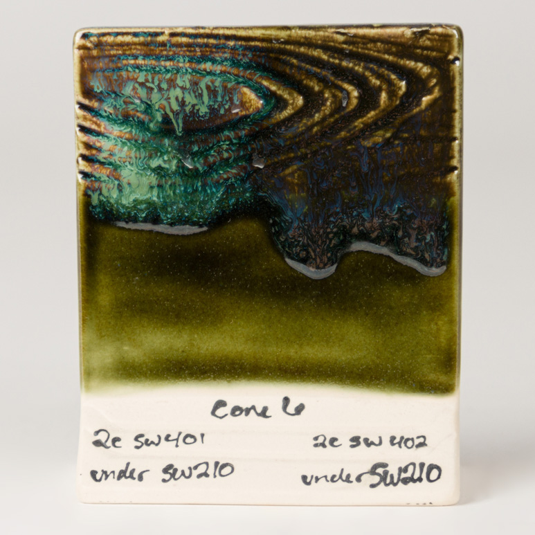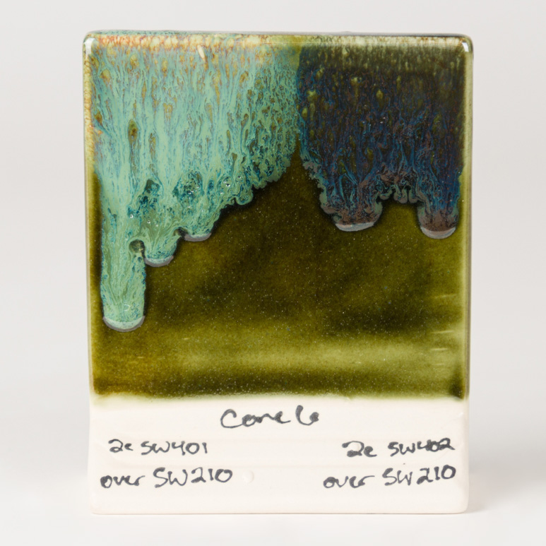 Cone 6: Emerald provides a translucent green gloss color. You will produce beautiful color variations with Emerald without the glaze running off your ware during firing. Designed to provide a hint of color with one coat, deeper color with two to three coats – but remaining translucent.