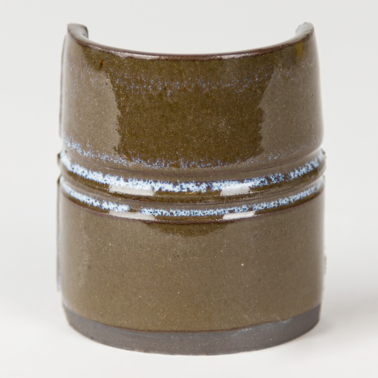 Cone 10 reduction (smaller image): White variation lessens leaving a transparent gloss with white pooling.