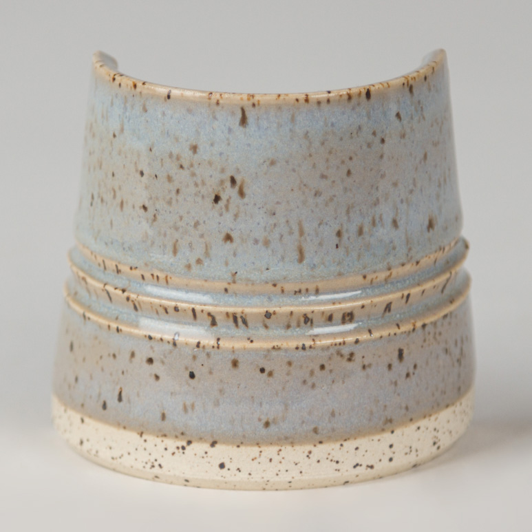 Cone 6 oxidation (larger image): Gray Opal creates a transparent gloss finish. It deepens in color from one coat to three but surface decoration and design remain visible through theglaze even with three coats. The glaze will break and pool around surface textures, creating opportunities for the opalescent character to develop.