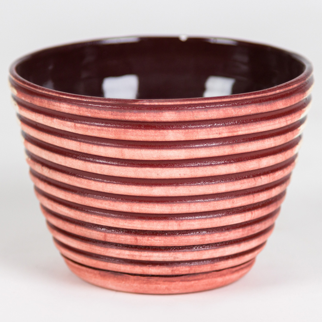 Cone 6 oxidation (smaller image – right): Fires to an opaque rust red with a slight sheen when applied fully concentrated. This product will leave red body staining when wiped away. Little to no movement when used alone or in combination.