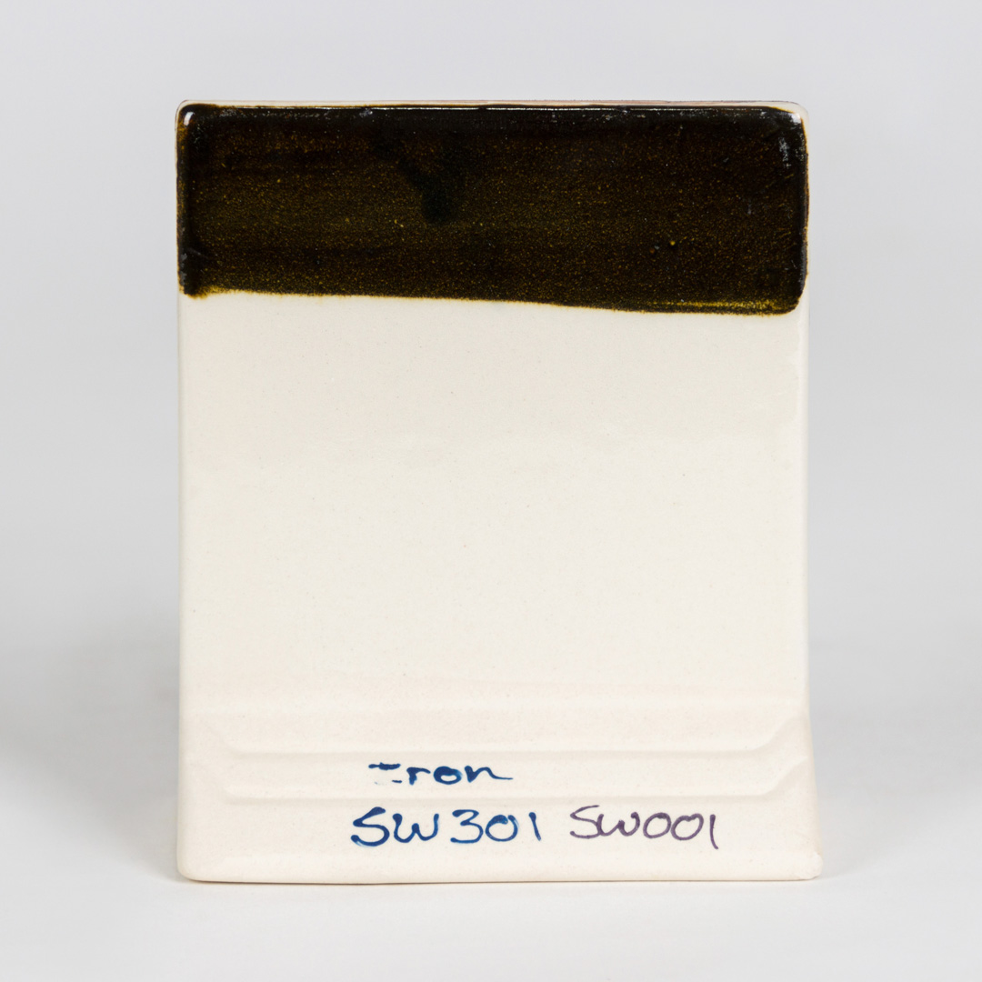 Washes are a multi-purpose product with limitless possibilities. Washes can be used alone or with any glaze from low fire (cone 06/05), mid-range (cone 5/6), and up to high-fire (cone 10). They are primarily used painted into textured areas and wiped away on the higher surface to accentuate the texture. It works great for stenciling, stamping and silkscreening as it is a very stable product. When using in combination, apply a transparent and stable glaze such as a celadon or clear glaze to ensure stability in performance and maintaining details. Can be layered with other glazes to promote interactions and does not add much movement to combinations. Iron Wash also works great as a body stain. Applying clear glaze can lessen the appearance of staining.
