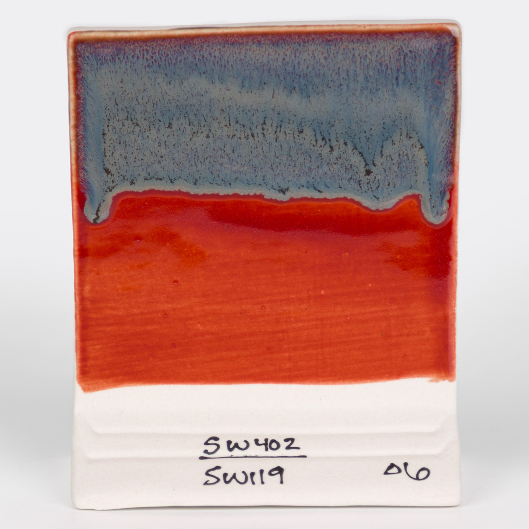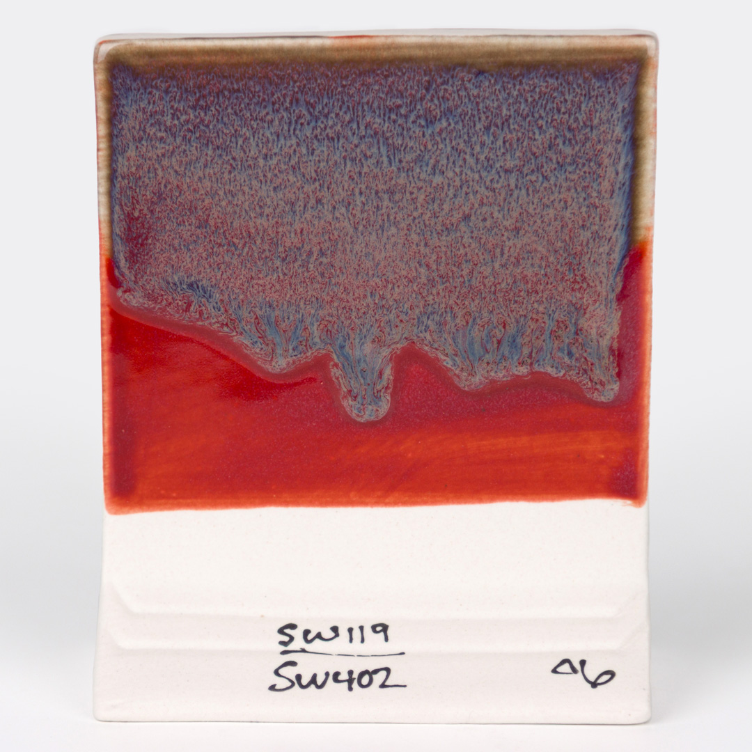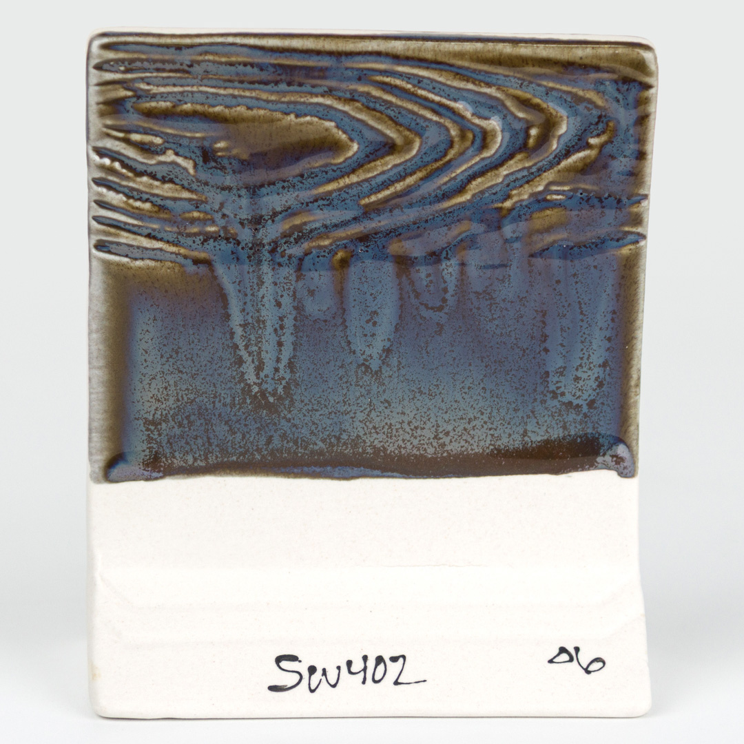 Flux is a flowing glaze developed for use with other stoneware glazes to enhance the movement, promote reactions and interesting effects. Apply 2-3 coats of Flux under or over another mid-range glaze to bring about “hidden colors”. Flux can be brushed in layers, glaze trailed, plopped with a brush, and blotted with a sponge. The thicker the application, the more mobility there will be.