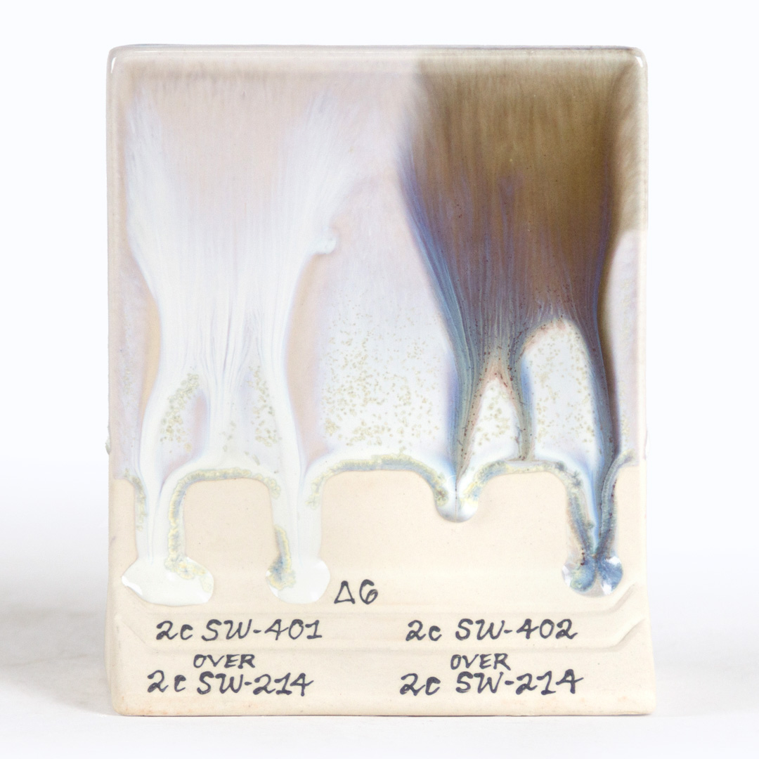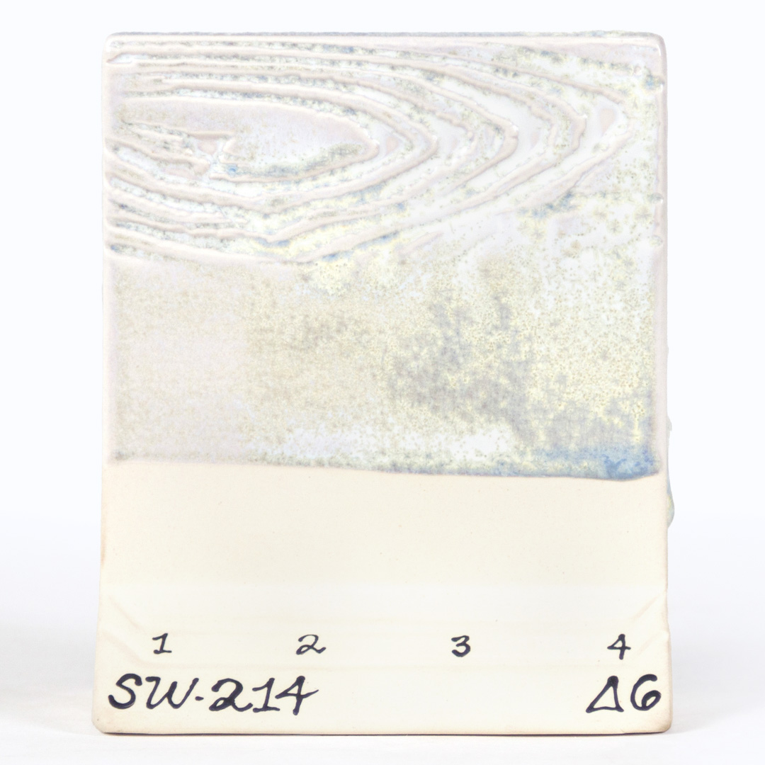 TIP: This glaze is stable at 3 coats. Additional coats or increased application thickness may result in movement. We recommend firing our micro glazes to cone 6 oxidation to reach crystalline development. Micro-Pearl achieves a stable, semi-opaque, frosted white result with a pearlescent satin finish when fired to cone 5. Can be used in oxidation or reduction firings. Results may vary. The choice of clay body, thickness of application, firing process, and temperature will greatly affect the fired results. Always test your application on your clay body in your kiln environment.