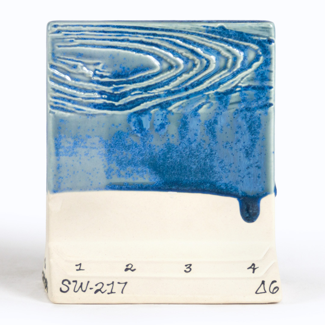 TIP: This glaze is stable at 3 coats. Additional coats or increased application thickness may result in movement. Due to the translucent nature of this product, be aware of your application consistency and thickness to avoid streaky brushstrokes. We recommend firing our micro glazes to cone 6 oxidation to reach crystalline development. Micro Cerulean achieves a stable, semi-opaque, deep blue result that breaks over texture and has a pearlescent satin finish when fired to cone 5. Can be used in oxidation or reduction firings. Results may vary. The choice of clay body, thickness of application, firing process, and temperature will greatly affect the fired results. Always test your application on your clay body in your kiln environment.