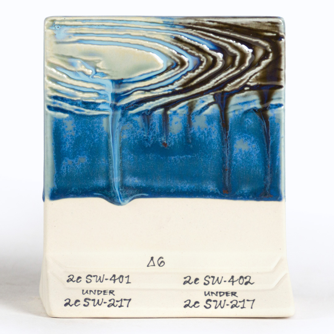 Stoneware classic glazes offer the depth, sophistication and reliability to artists working from mid-range to high-fire temperatures. Many glazes will break over textures, revealing secondary colors and shades. Used alone, stoneware glazes produce beautiful color variations. One coat will allow the clay body to show through the glaze and two to three coats deeper the color. The choice of clay body, thickness of glaze application, firing process and temperature will affect the fired finish.
