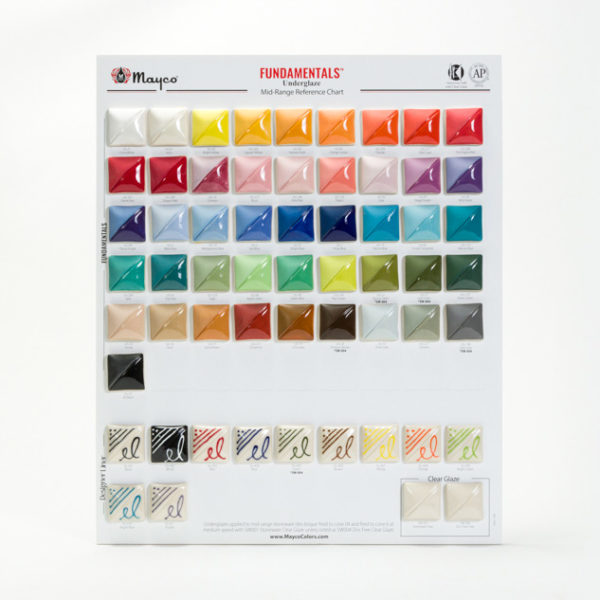 Includes Mayco’s Fundamentals Underglaze chips fired to cone 6.