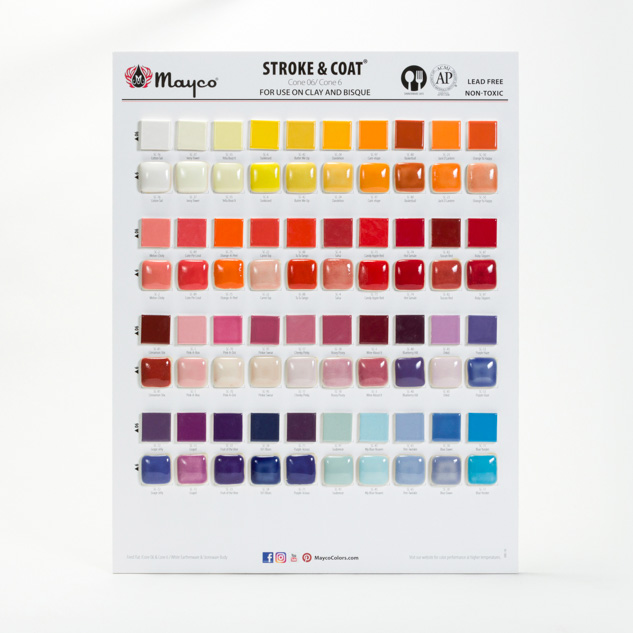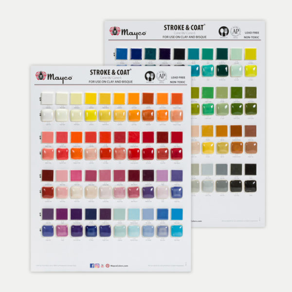 Includes Mayco’s Stroke & Coat chips fired to cone 06 and cone 6.