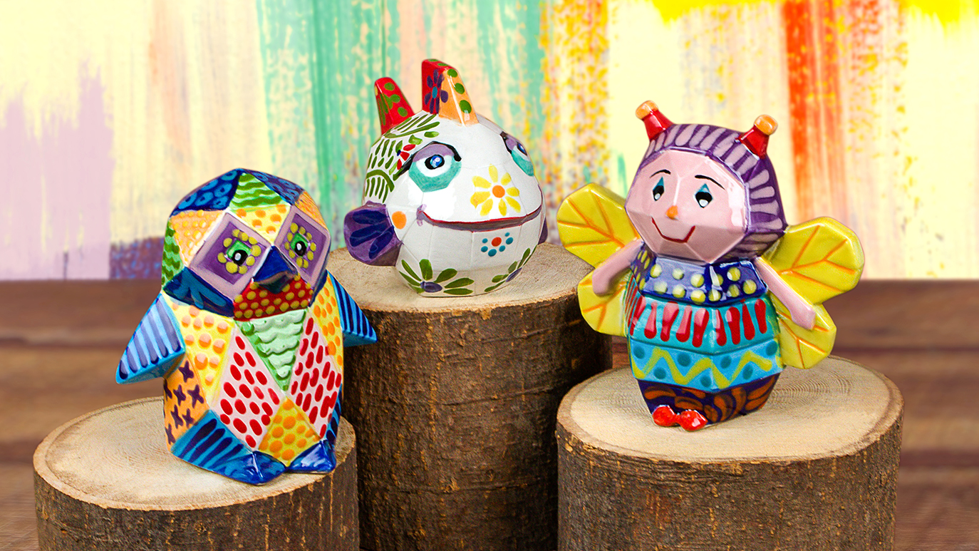 Crystal and Stroke & Coat Facet-inis (Bee, Fish & Penguin)