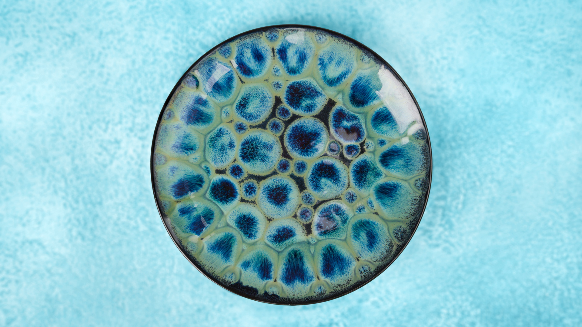 Low Fire Waterfall Peacock Bowl