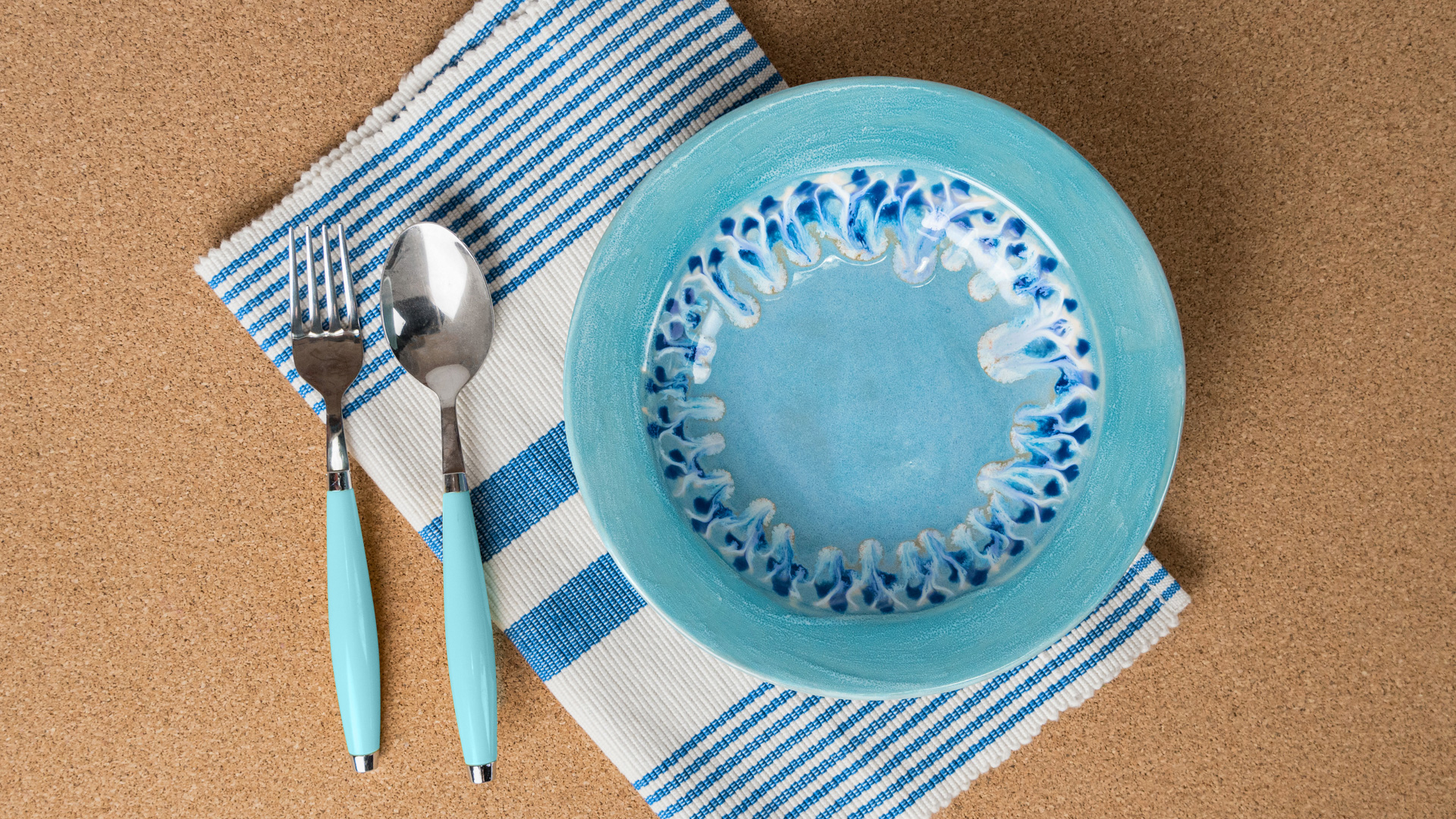 Using the Soft Fan Brush, apply 2 heavy coats of SW-123 Sapphire to the rest of the inside of the bowl.Wipe off any excess glaze from the foot of the teapot
