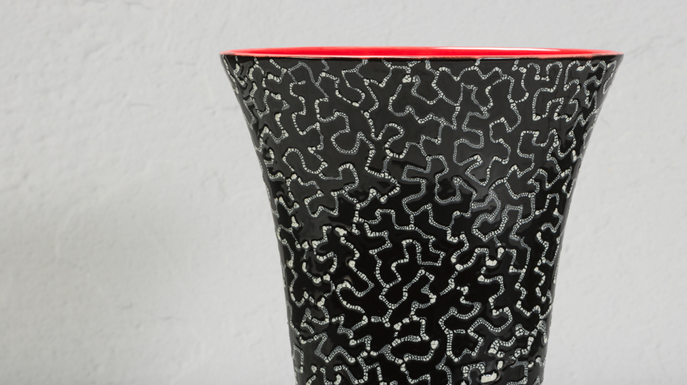 Starting from the top of the vase, apply one coat of the cobblestone to form the pattern using the Designer Bottle. A thicker heavier line will break up more than a thin line. Try to keep the lines even while painting while completing the design.