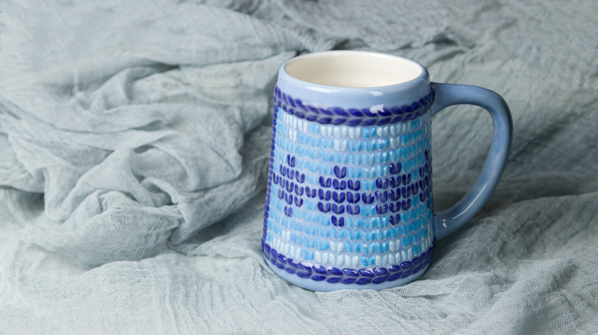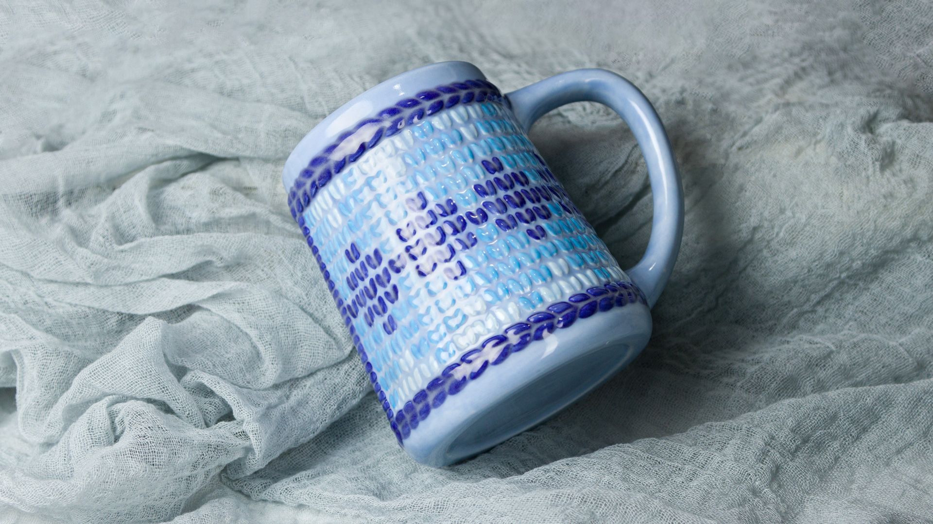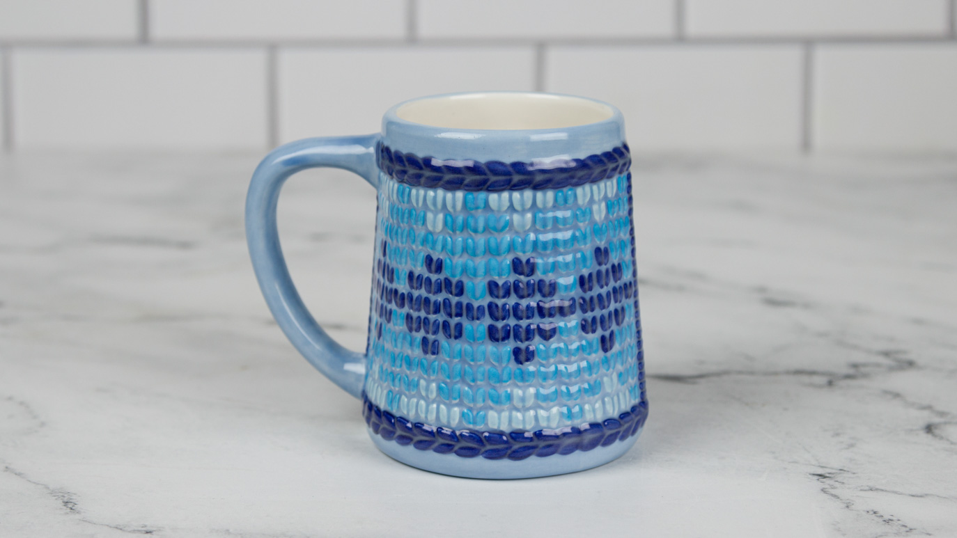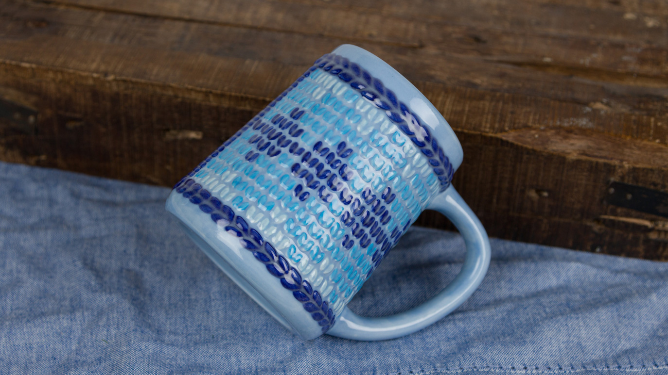 - Using the Soft Fan with FN-211 Sheer Blue, apply 2 coats to the outside of the mug. Allow glaze to dry between coats.