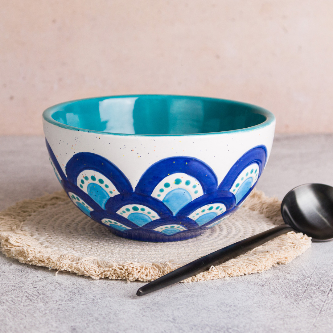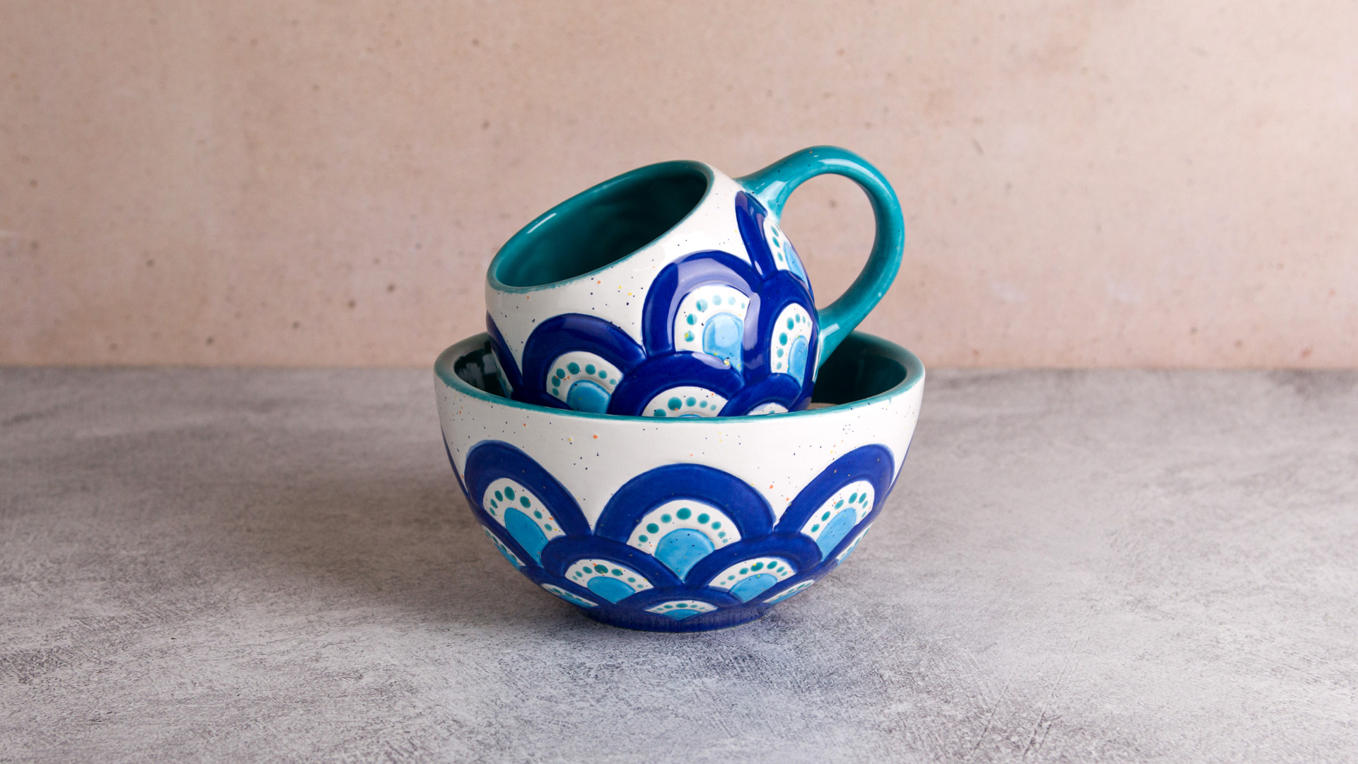 Blue Scalloped Mug and Bowl