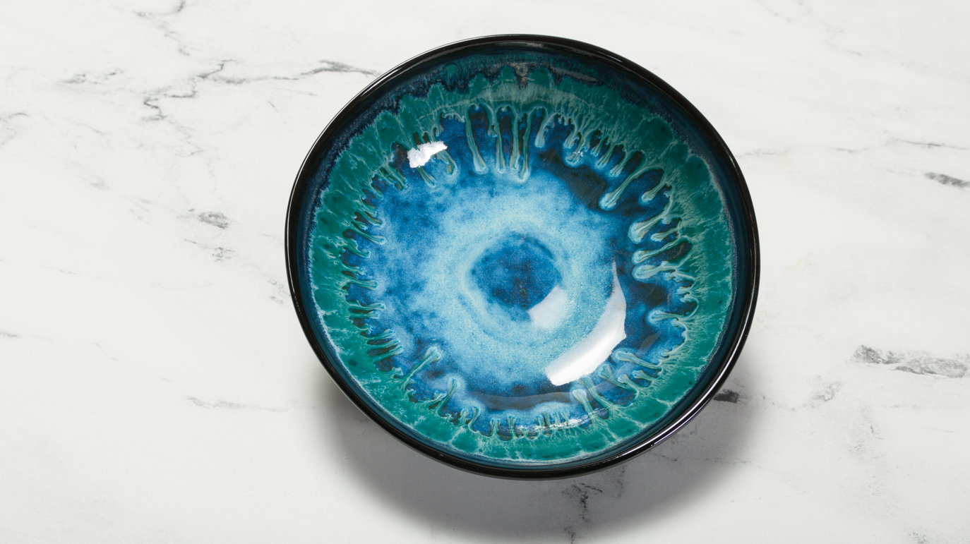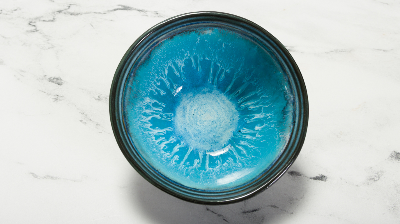 - Using a fan brush apply 2 coats of Stoneware glaze (SW-166 or SW167) to the inside of the bowl.