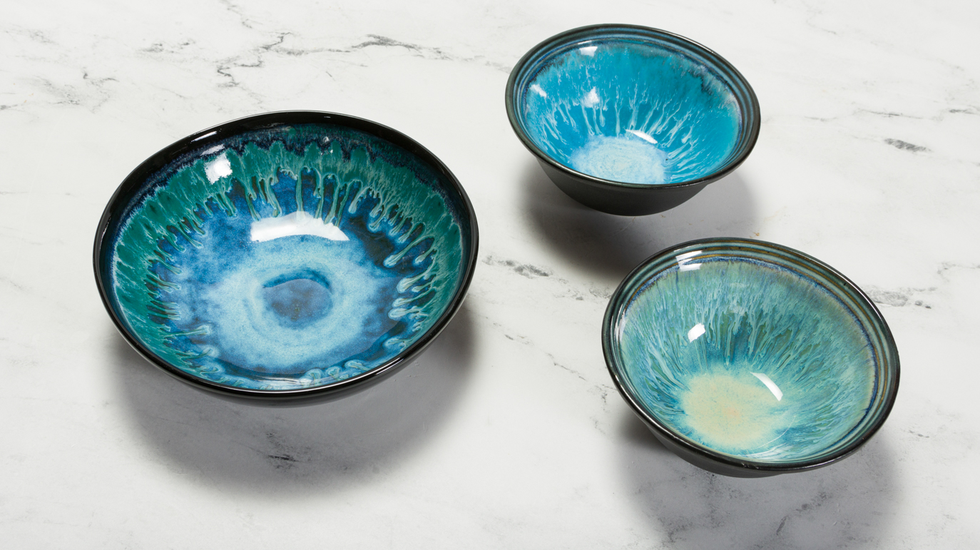 SB110 Bowl #2: SC9 Jaded, SW401 Flux, SW167 Sand and Sea