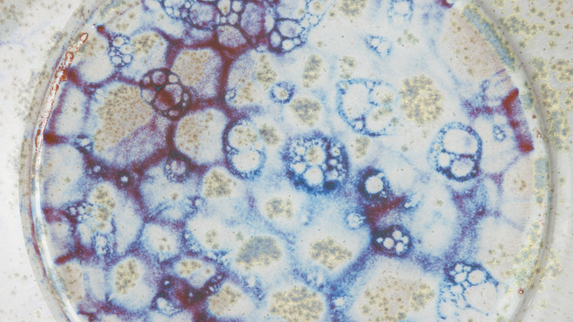 Blow the bubbles until they overflow the cup and gently scoop out and place them onto the piece. Allow the bubbles to pop naturally. Repeat until the whole plate is covered.
