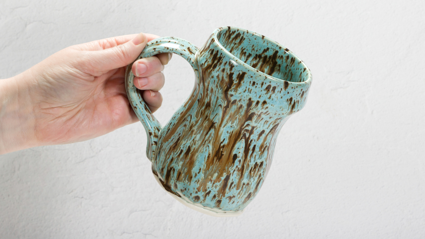 - Use a fan brush to apply 3 coats of SW-189 Cenote to the entire mug, avoiding the bottom.