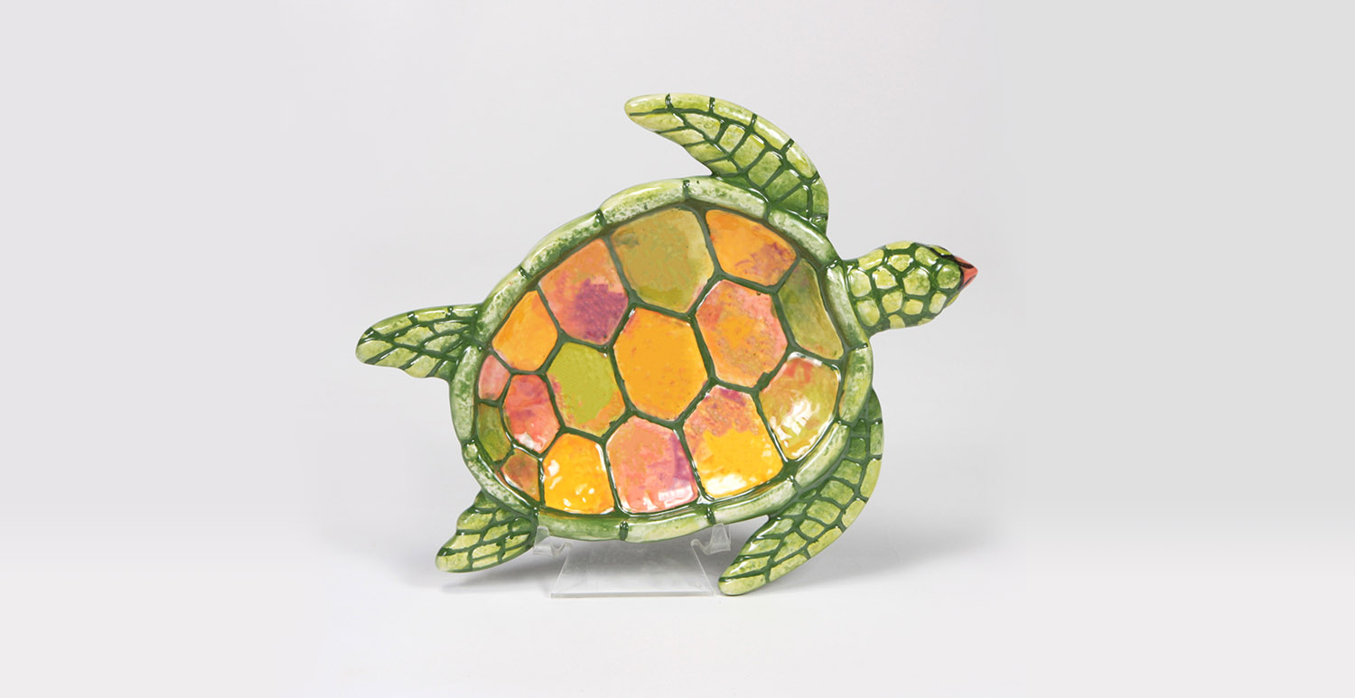 2. Use the Script Liner to apply two coats of the following colors to the turtle’s shell: SC-13 Grapel, SC-22 Carrot Top, SC-26 Green Thumb, SC-27 Sour Apple and SC-97 Cant-elope. Use at least two colors on each section. Refer to photo for placement.