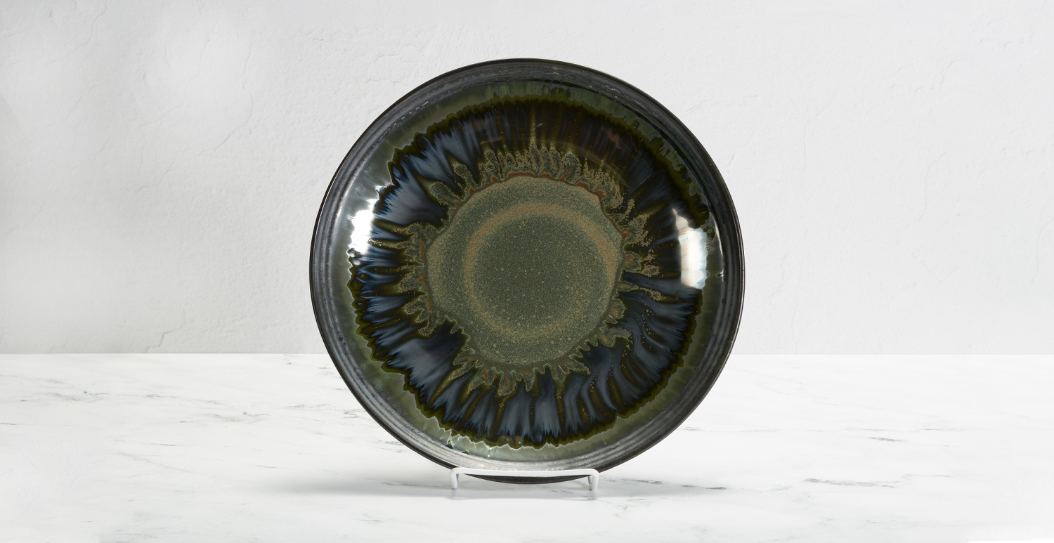 Using a fan brush, apply 2 coats of SW-304 Copper Wash in a 1” band around the rim of the bowl.