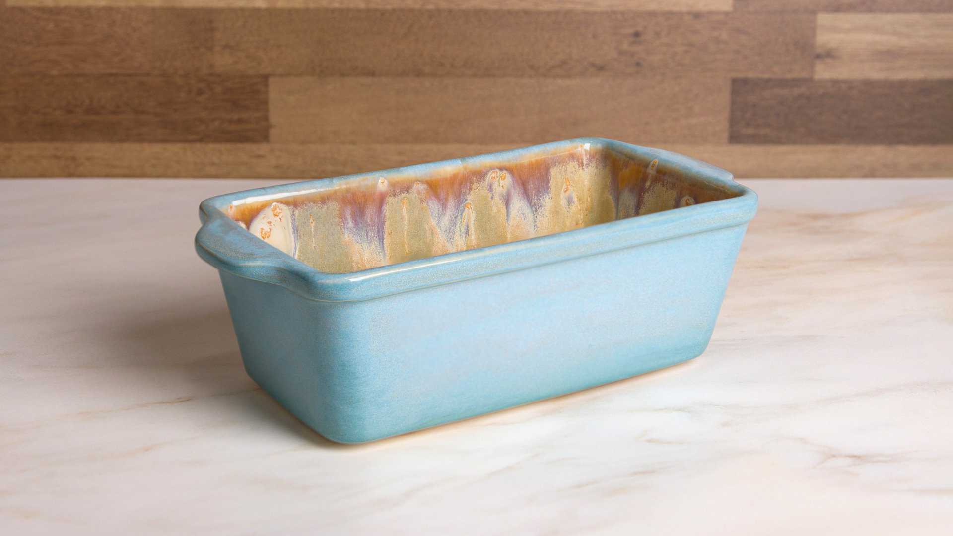 Using #8 fan brush (RB-140) apply 3 coats SW-180 Desert Dusk all over bottom of pan and up ⅔ of side.