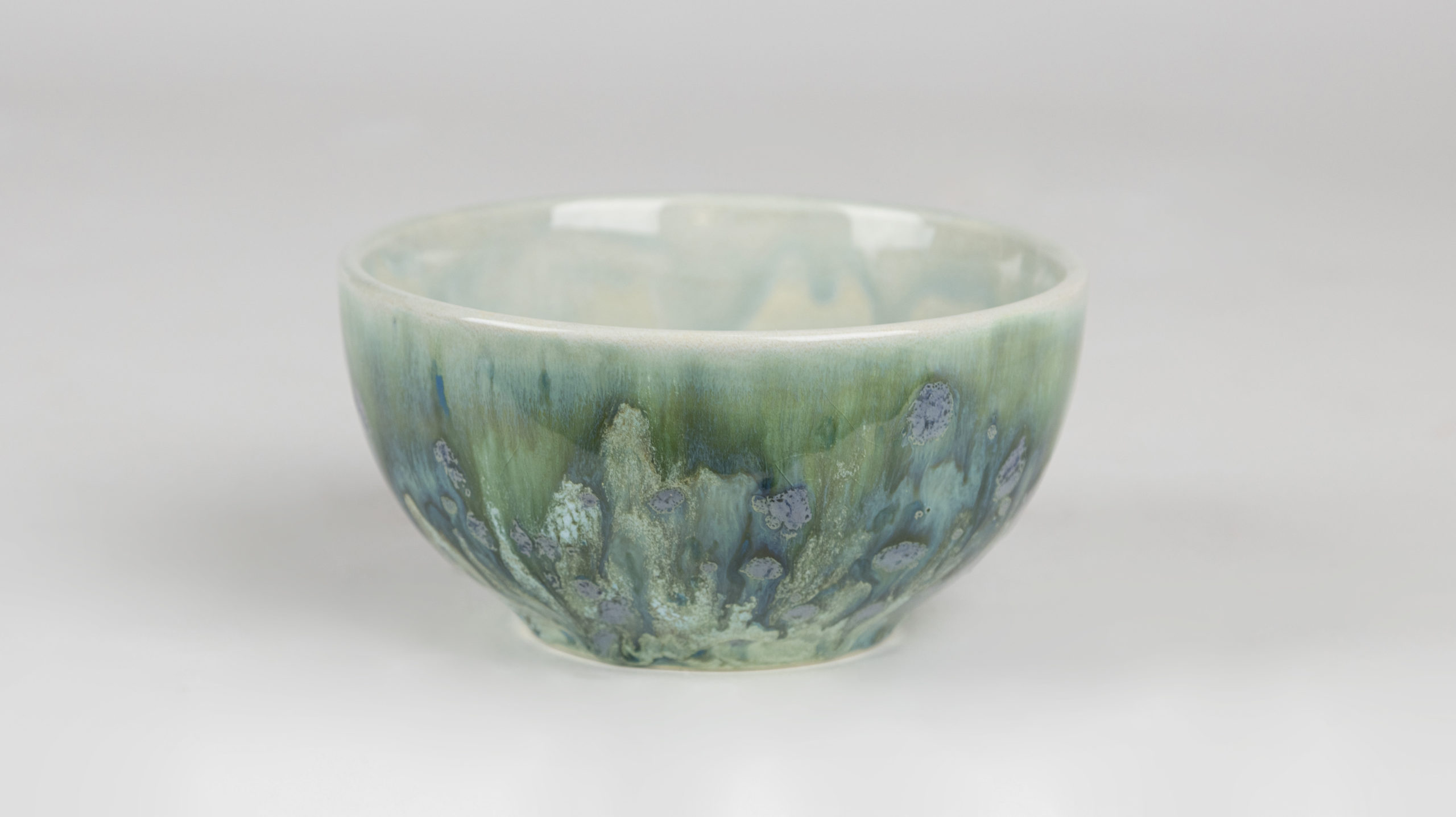 Using the Soft Fan with EL-208 Moss Creek, apply 2 coats to the outside of the bowl. Recede the final coat to prevent dripping. Allow glaze to dry between coats.