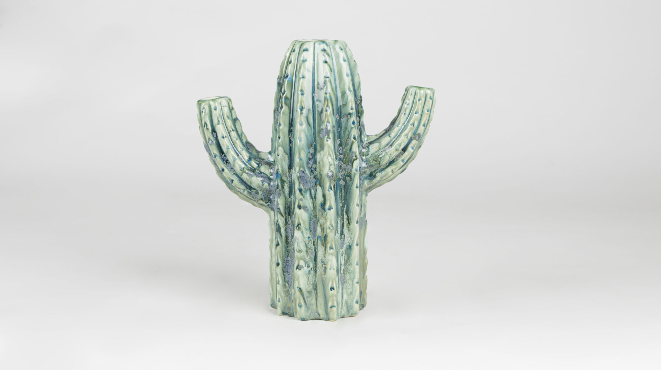 Using the Soft Fan with EL-208 Moss Creek, apply 2 coats to the outside of the cactus. Recede the final coat to prevent dripping. Allow glaze to dry between coats.