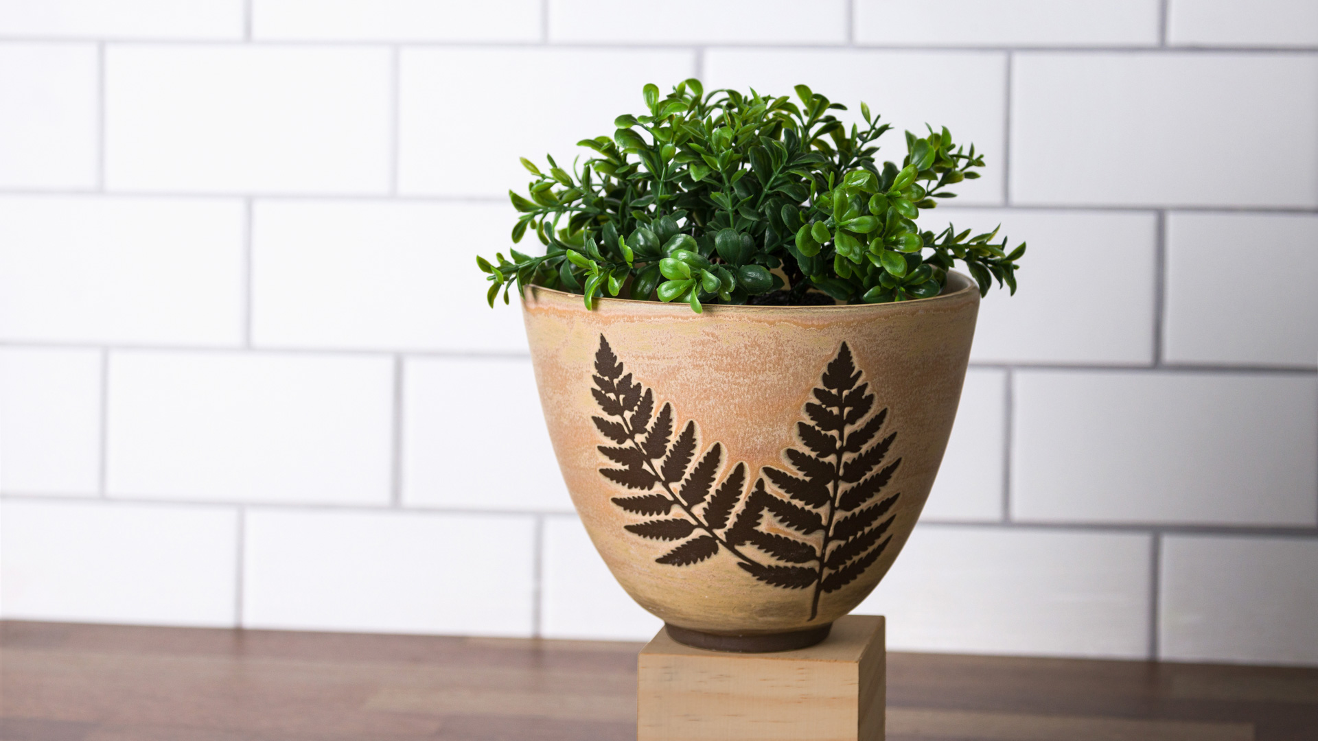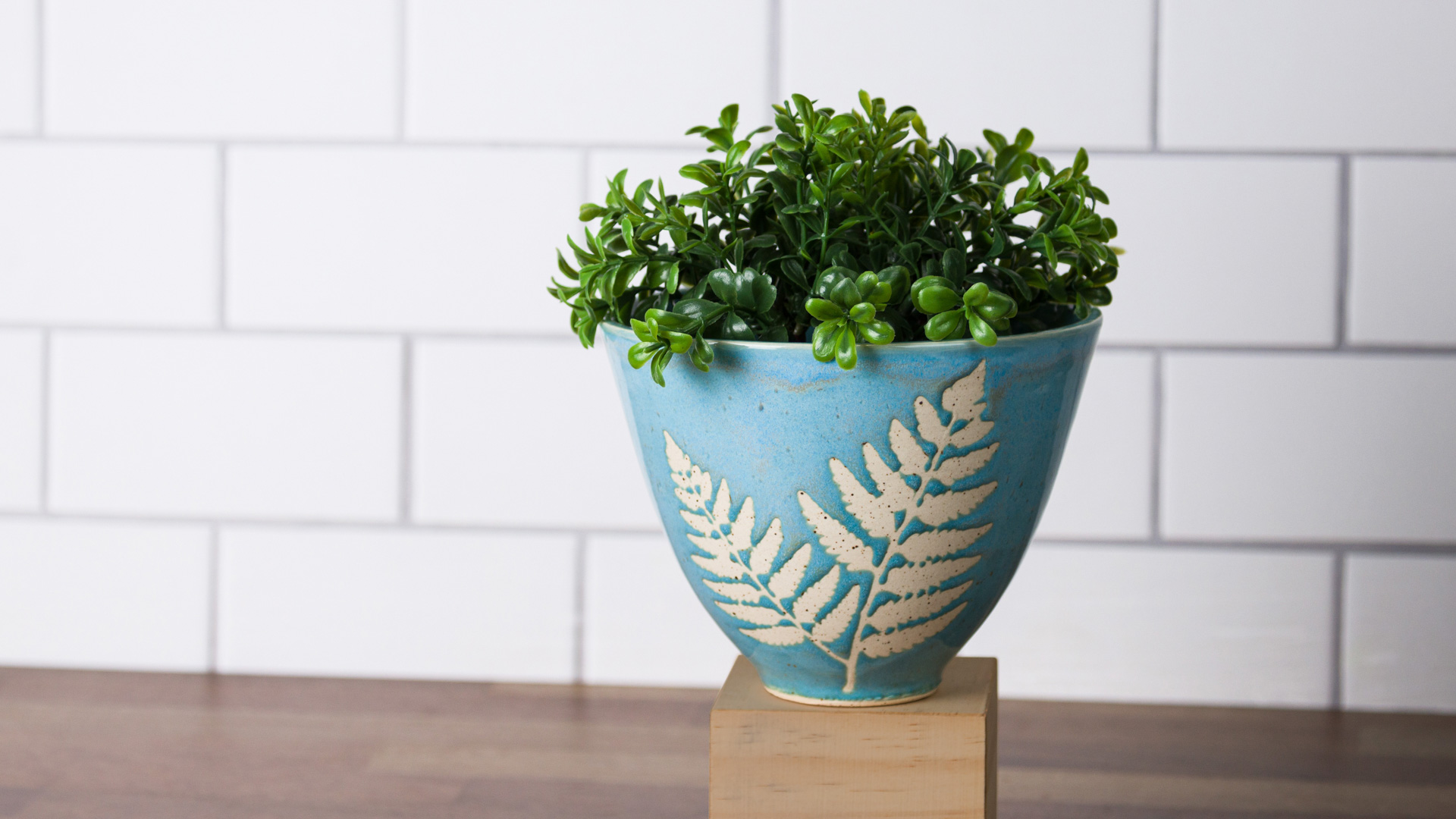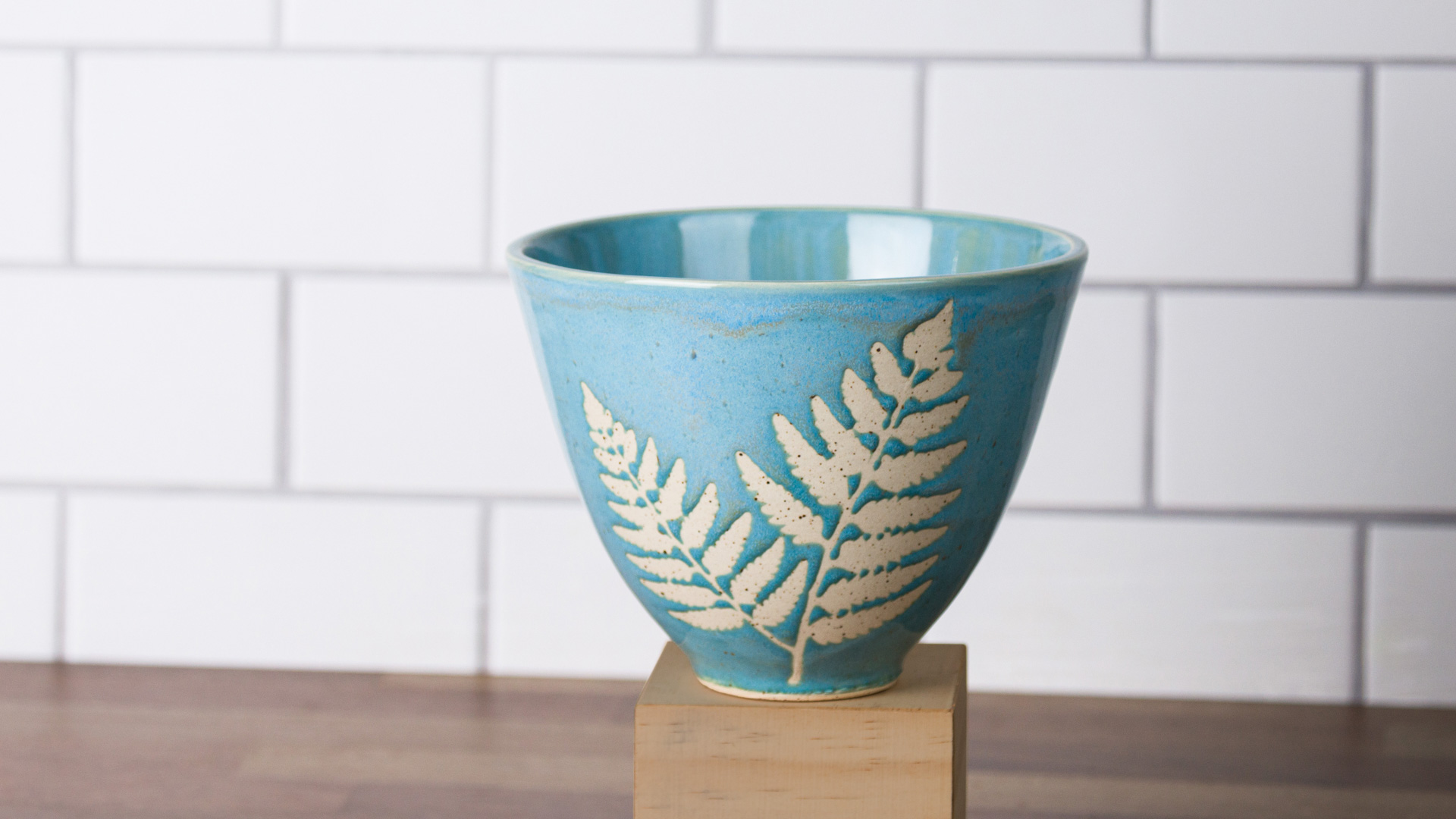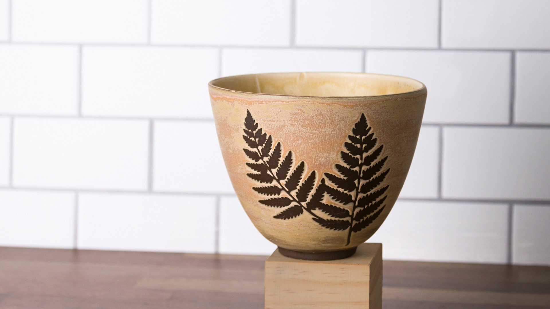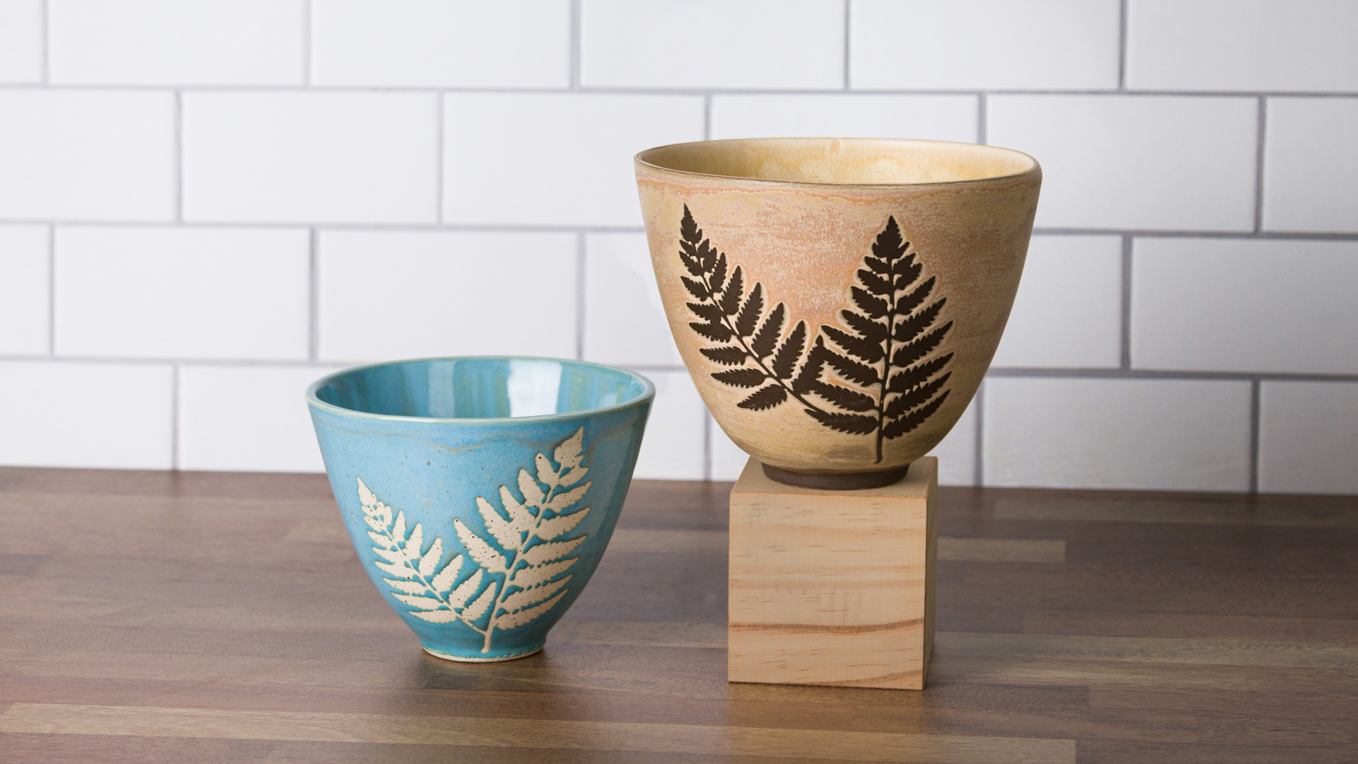 Apply vinyl resist or lightly hand draw with a pencil leaf pattern on top of engobe.