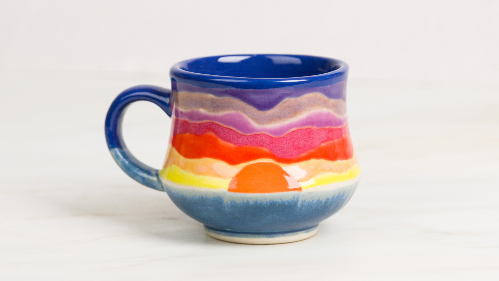If using a vinyl resist, apply 3 coats of SW166 Norse Blue over entire engobe. Remove resist before the Engobe dries completely prior to firing. Do not fire with vinyl resist left on mug.