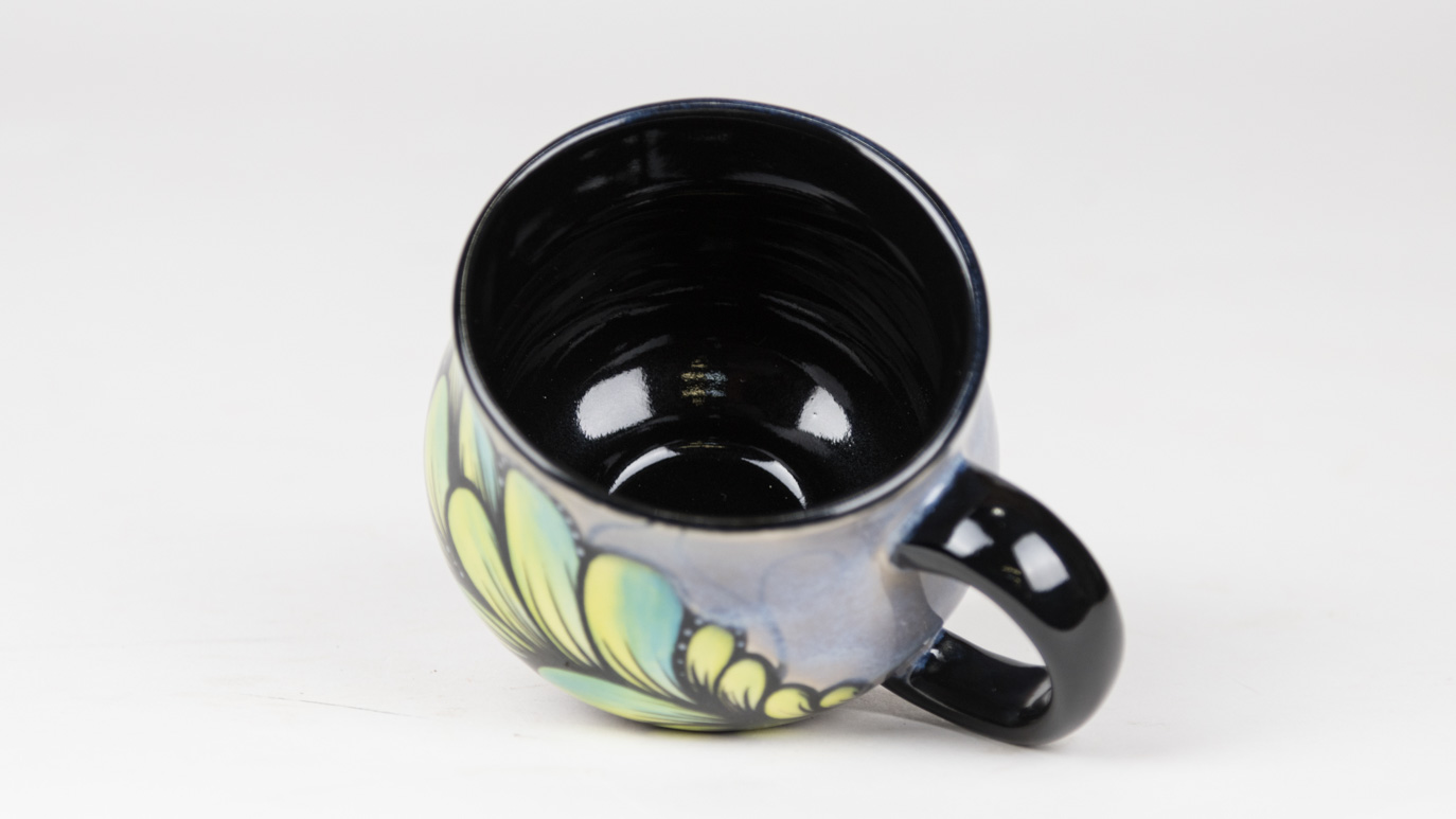 Use a script liner to glaze around the design with 3 coats of SW-255 Gray Opal. Apply using a variety of brush strokes to prevent streaks. If the Gray Opal is applied heavily above the design, it may sag down. Applying you design closer to the top lip of the piece can help prevent this.