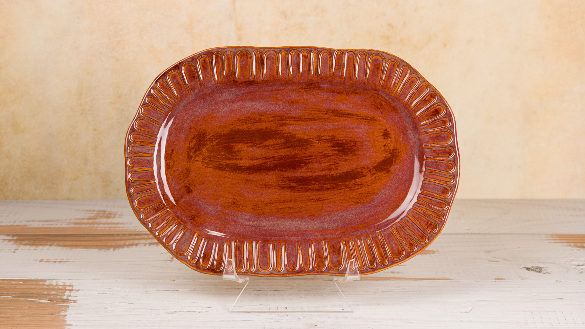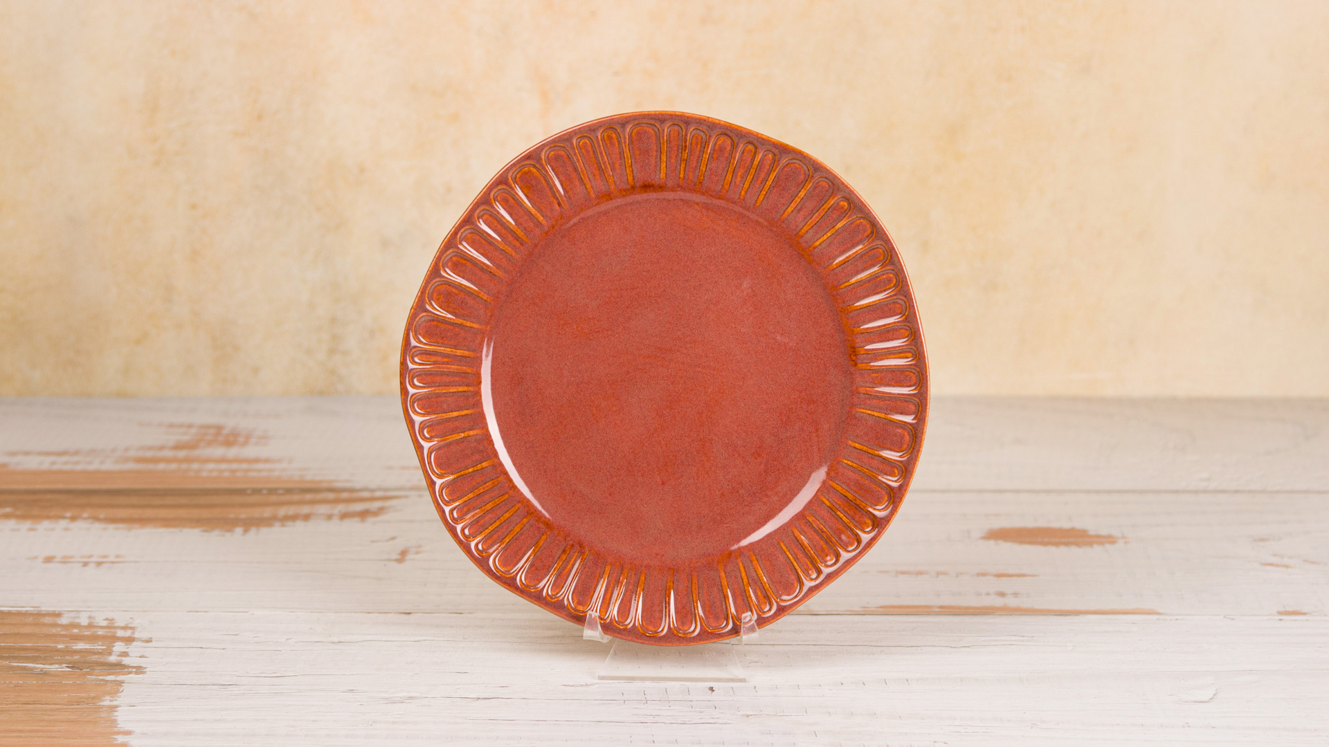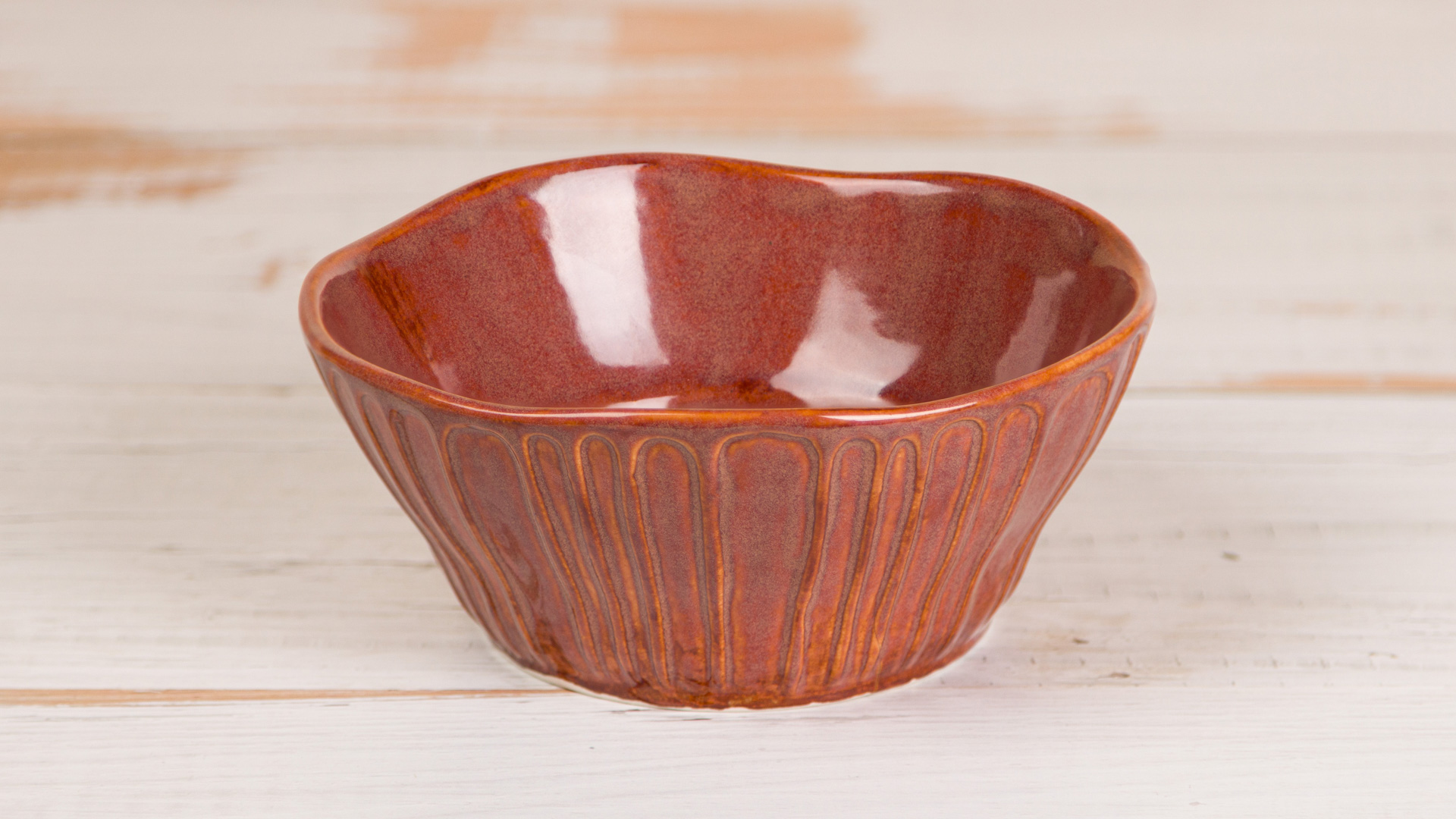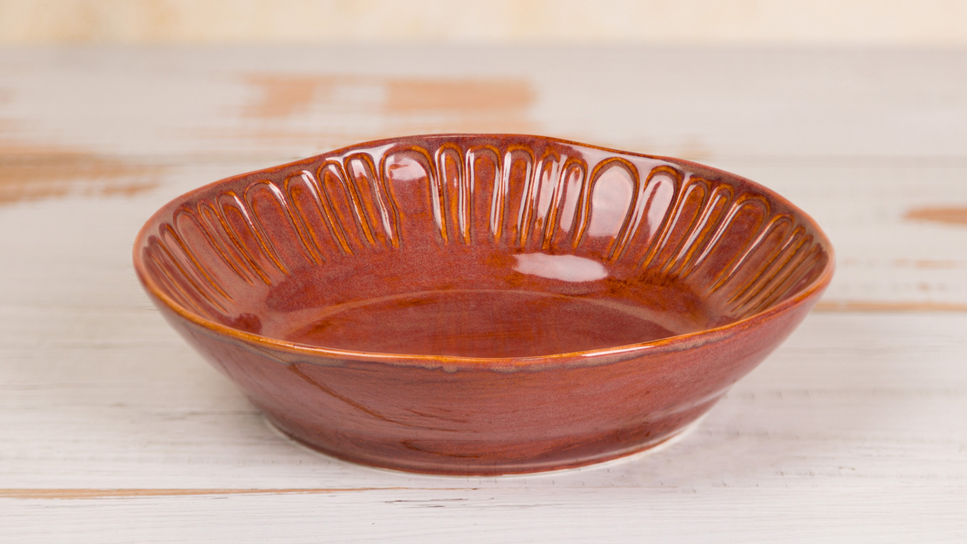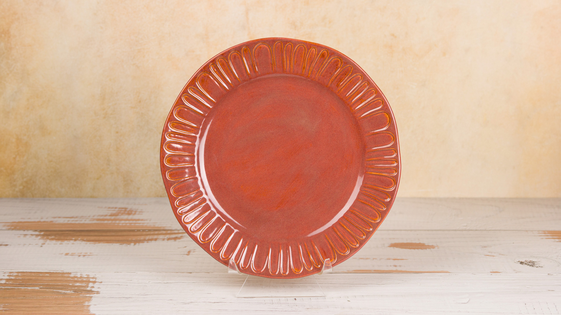 With a #8 Soft Fan Brush (RB140) apply 3 coats of SW113 Speckled Plum to all 5 pieces of the Fluted Dinnerware Set.
