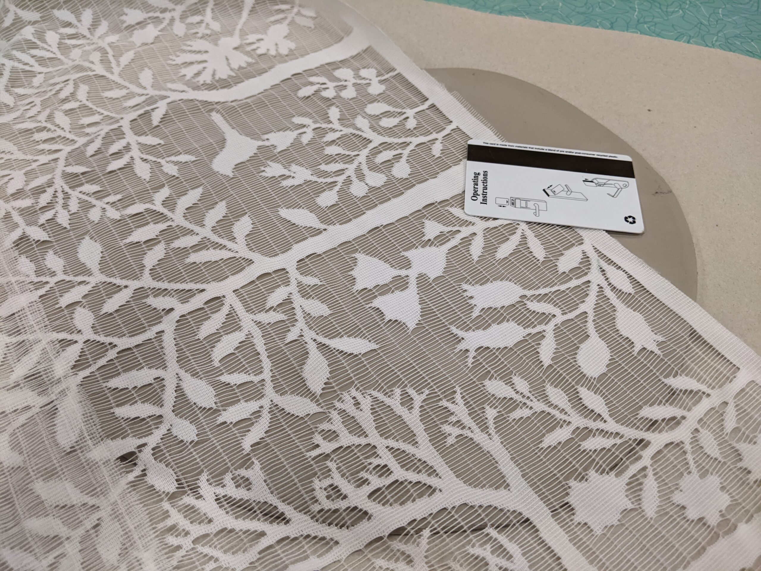 - Texturize the slab using found objects, lace, or stamps. This pumpkin uses lace pressed into the glaze with the plastic card. (Fig 6)