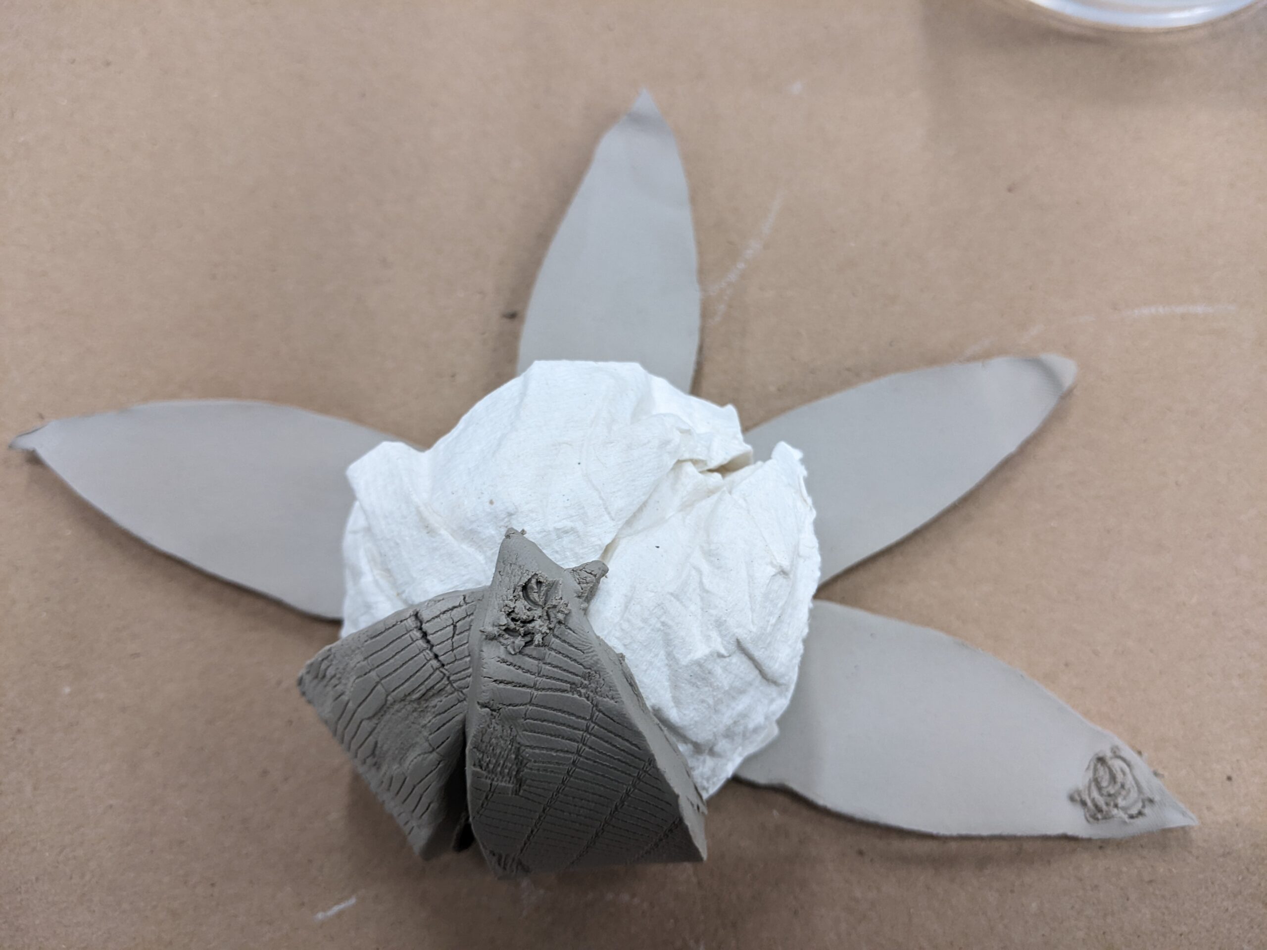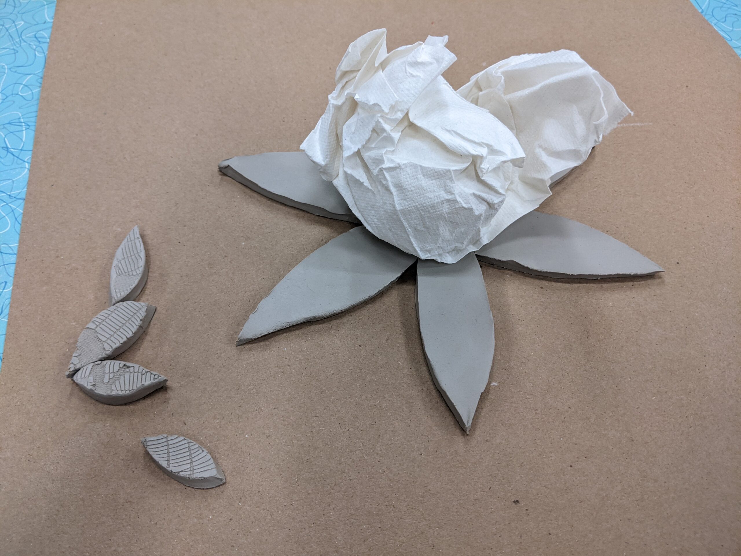 Accommodations: Pre-roll the slabs for your students. Make sure they are covered so as not to lose any moisture before the students start working. Pre-cut the petal pattern and leaves, and texture can be added after the pattern is cut out.