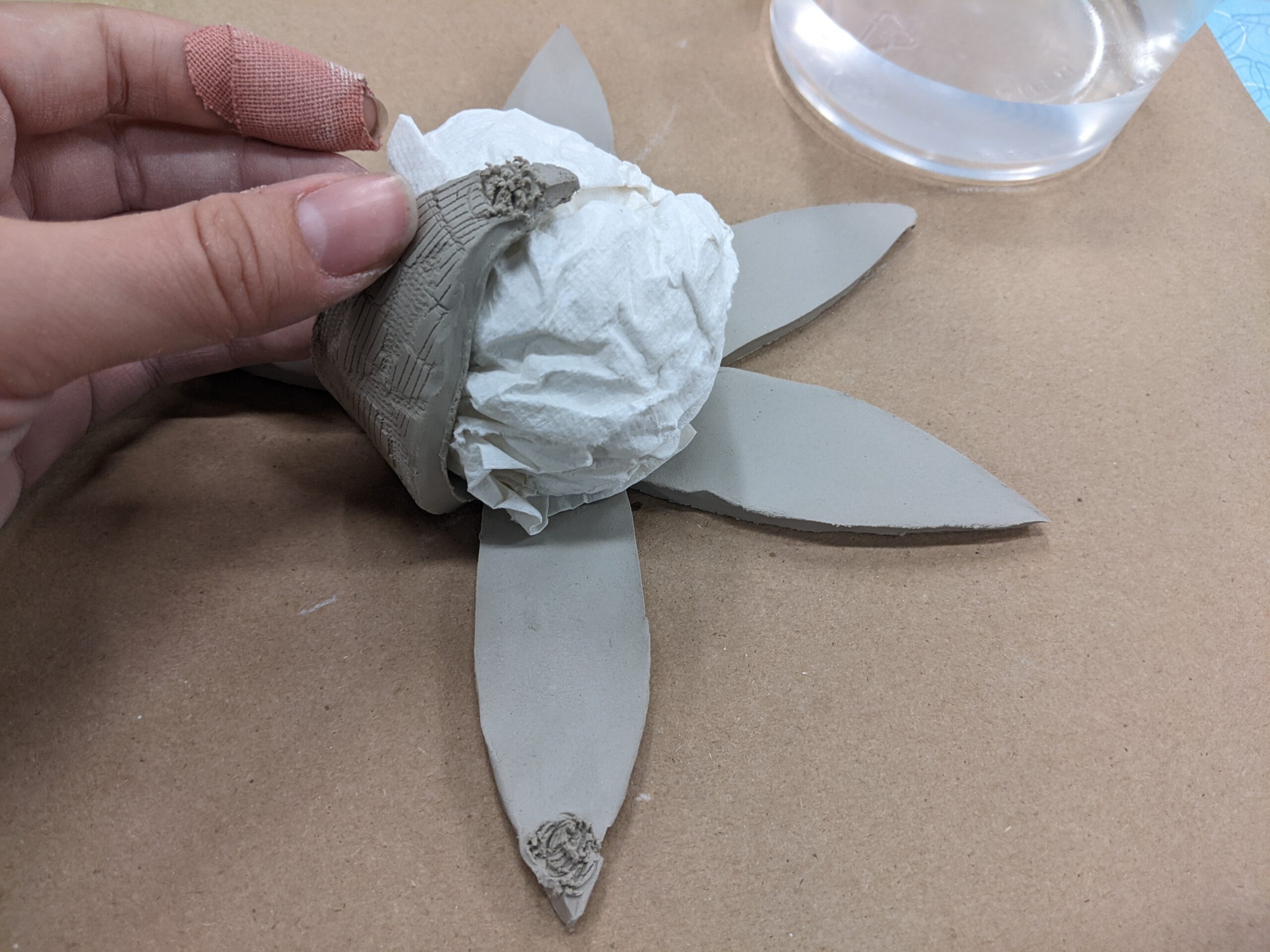 - Wad up a small amount of paper towel and place in the center of your clay cutout. (Fig 8)