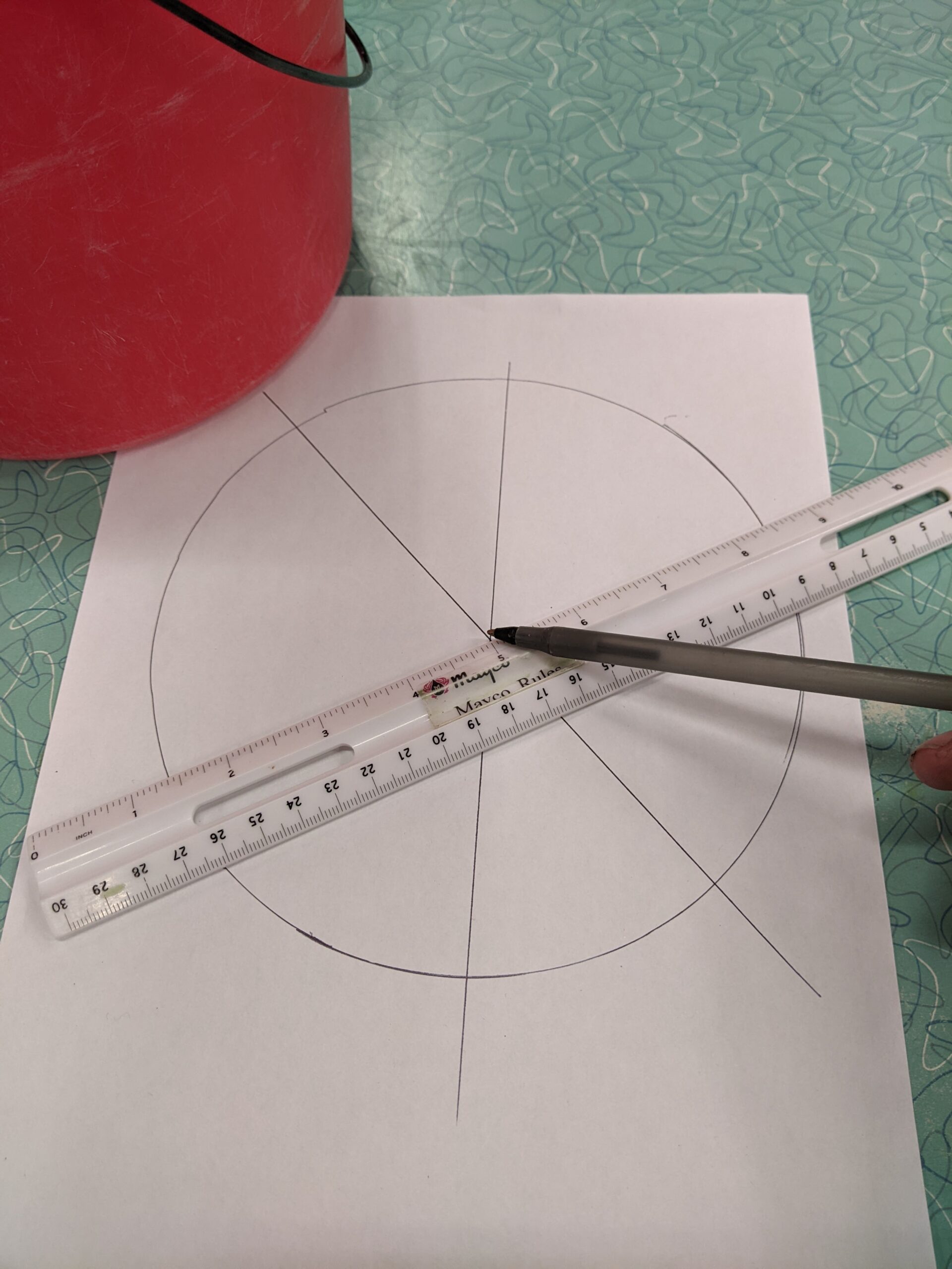 - With a ruler, divide the circle into even “pie” sections. The pattern seen here uses three lines to create six pie sections. (Fig. 1)