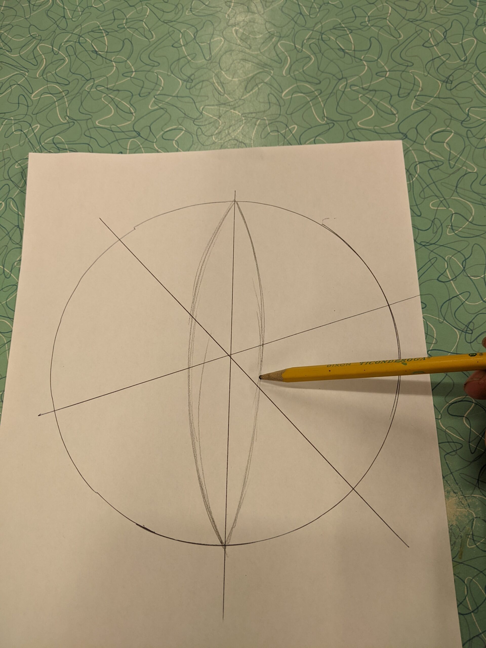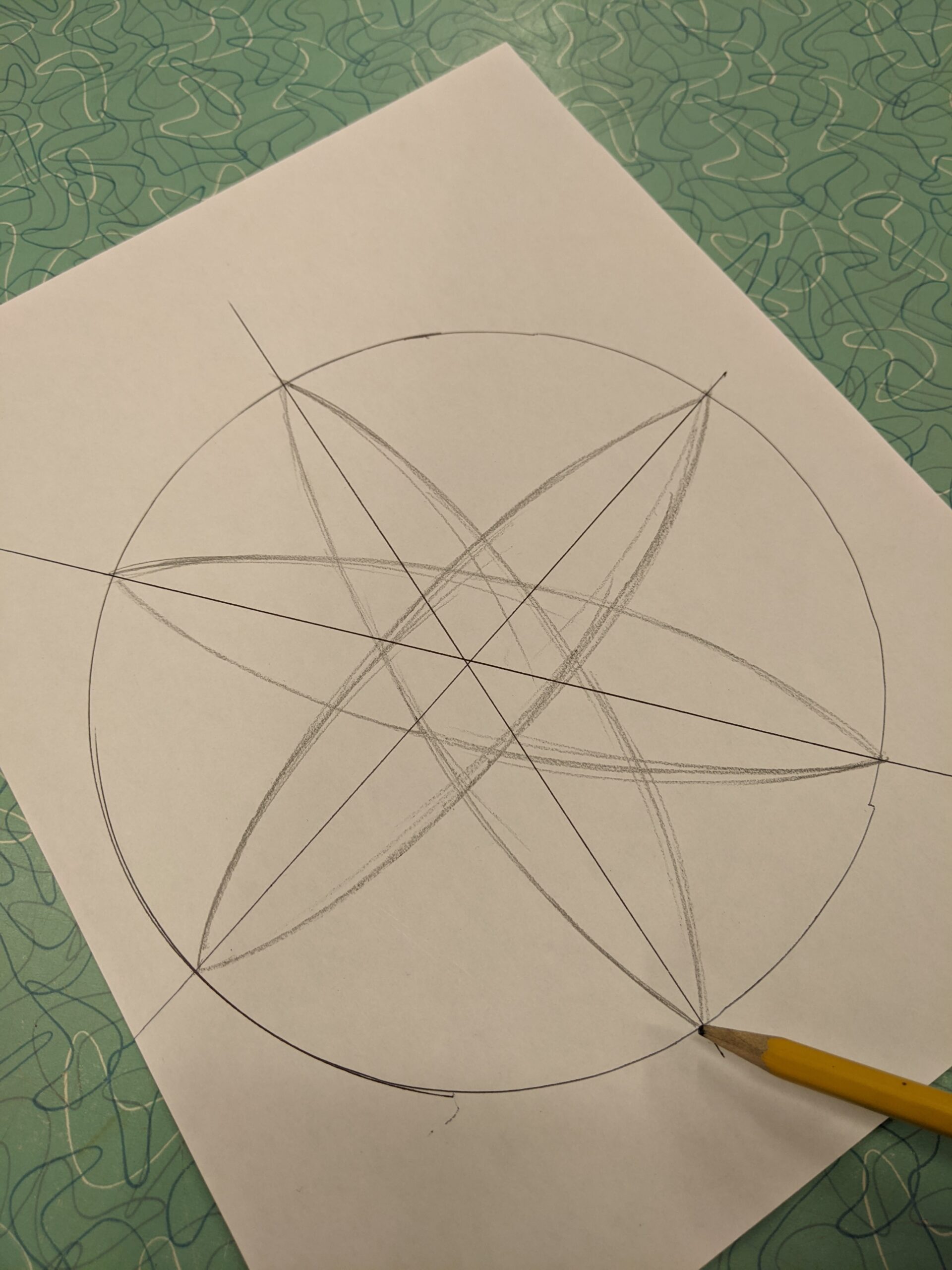 - Repeat on each line. All the lines should now resemble a flower shape in the center of your traced circle. (fig.3)