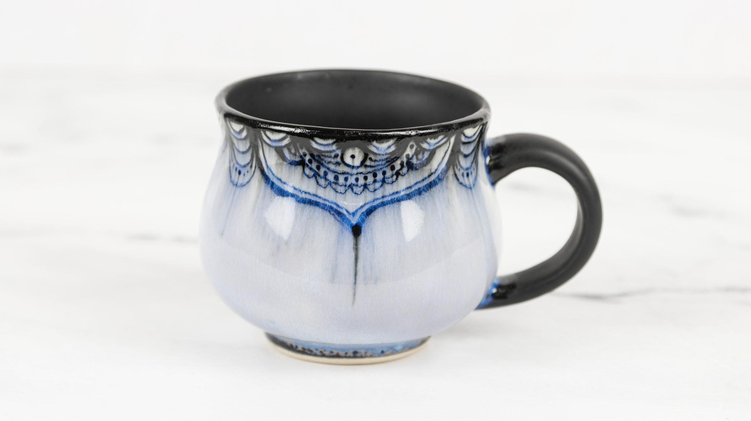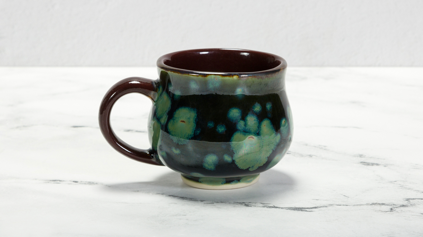 - Use a fan brush to apply 3 coats of SW-130 Copper Jade to the inside of the mug and rolling over the lip to overlap with the Frosted Lemon.