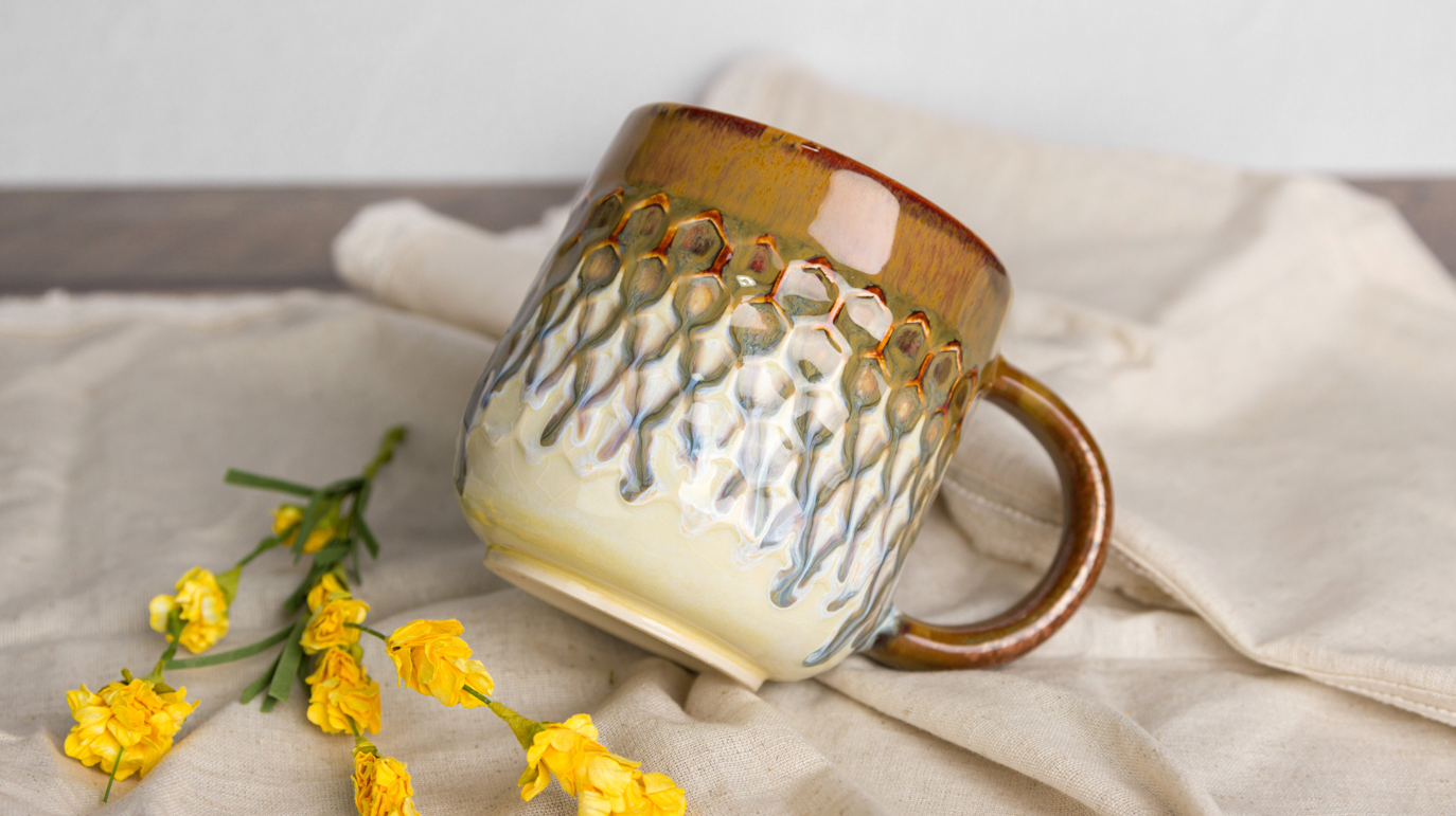 Frosted Lemon and Copper Jade Honeycomb Mug