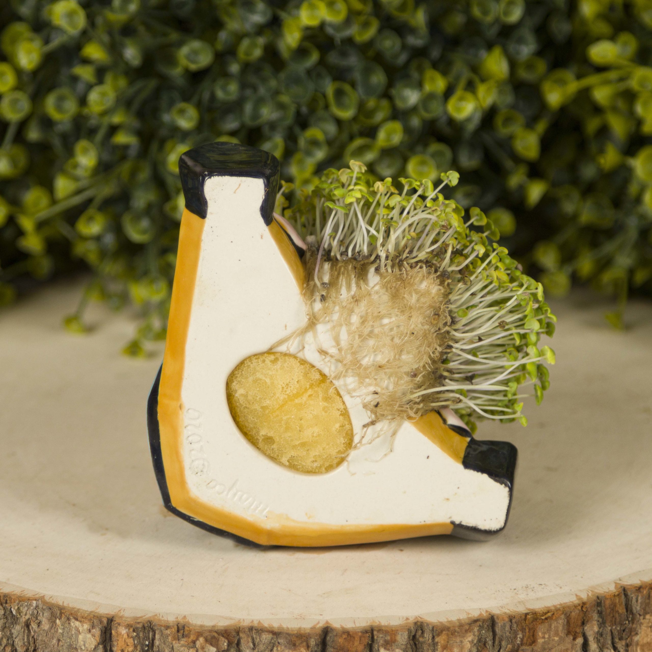 - Note: do not dip in clear glaze. Beard, bottom and inside must be unglazed to grow chia seeds on