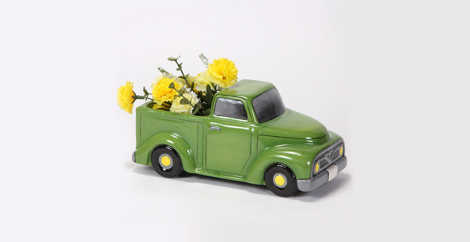 3. Using the Soft Fan and Script Liner with SC-26 Green Thumb, apply one coat over one side of the truck. While the glaze is still wet, use the Script Liner with SC-27 Sour Apple and SC-36 Irish Luck to shade. Repeat for remaining sides of the truck.
